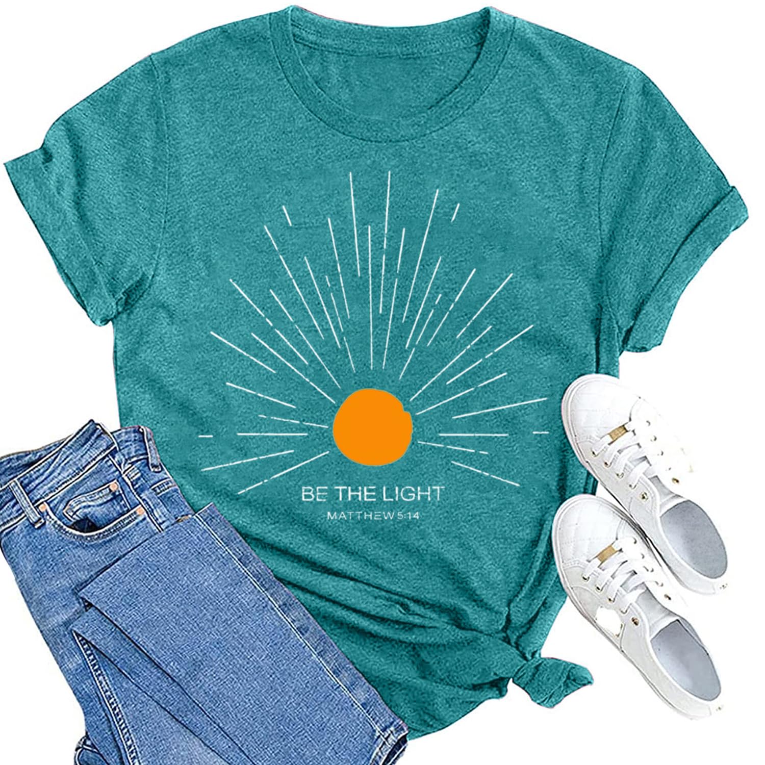 MAIHUN Christian Shirt Womens Be The Light Tshirt Sunburst Vintage Bible Verse Tee Top|Clothing