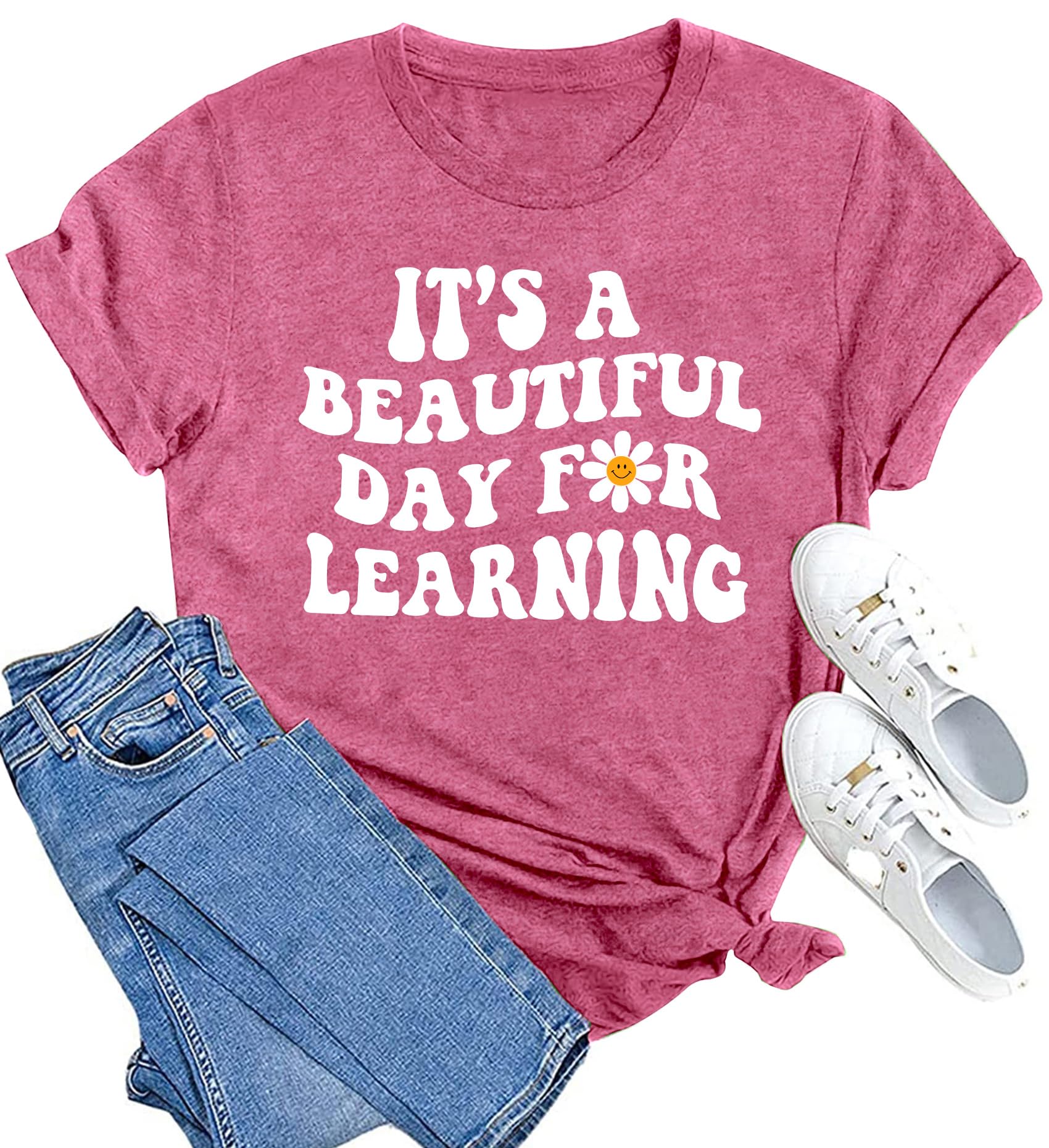 MAIHUN Women Teacher Life Shirt Teacher Gift Short Sleeve Shirts It s a Beautiful Day for Learning T-Shirt|Clothing