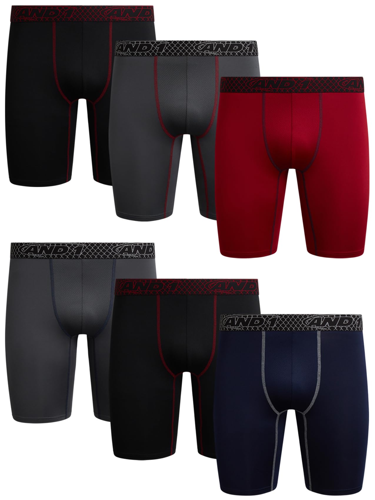 AND1 Mens Boxer Briefs - 6 Pack Platinum Performance Long Leg Boxer Briefs with Pouch - Boxers for Men, 9" Inseam (S-3XL)|Clothing