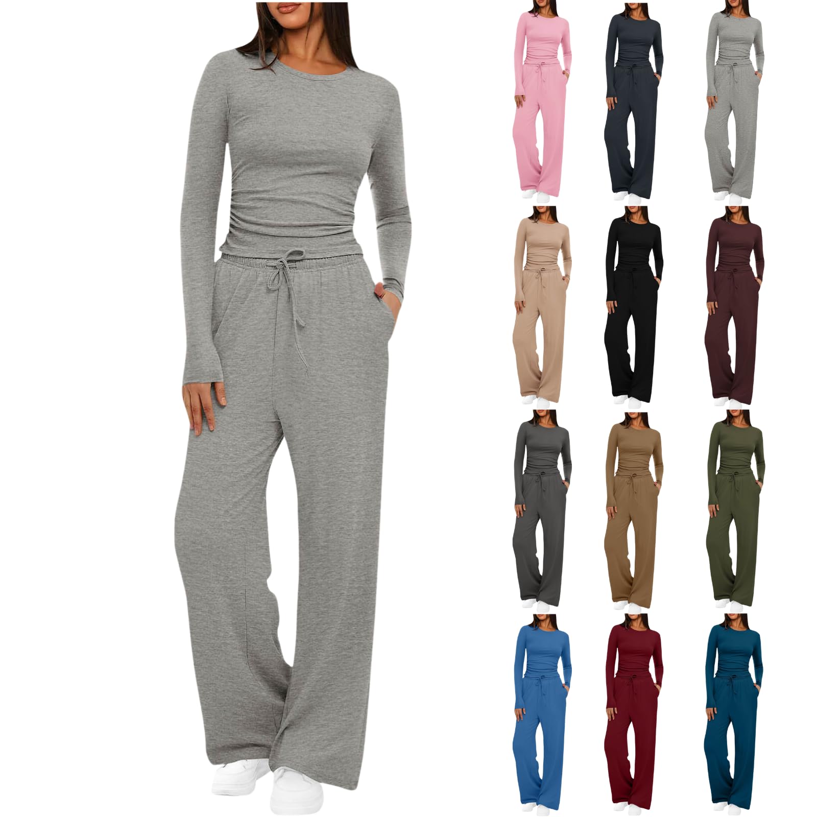 TIGENA Fall Sets Women 2 Piece Outfits Two Piece Sets For Women Fall Long Sleeve Tops And High Waisted Pants Matching Tracksuit Set Lounge Travel|Clothing