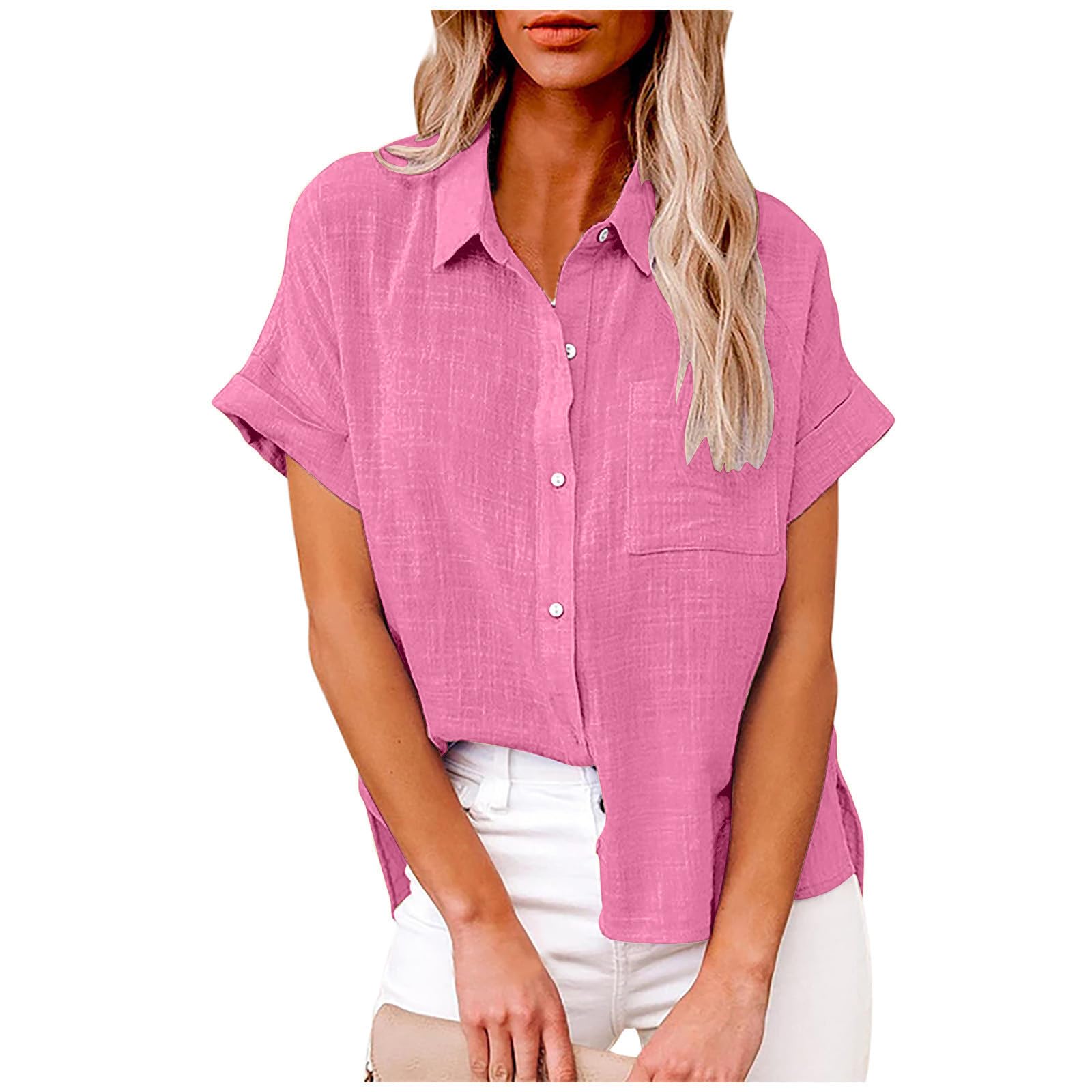 TANGNADE Oversized Linen Button Down Women Short Sleeve Shirts Collared Plus Size Boyfriend Loose Blouse with Front Pocket|Clothing