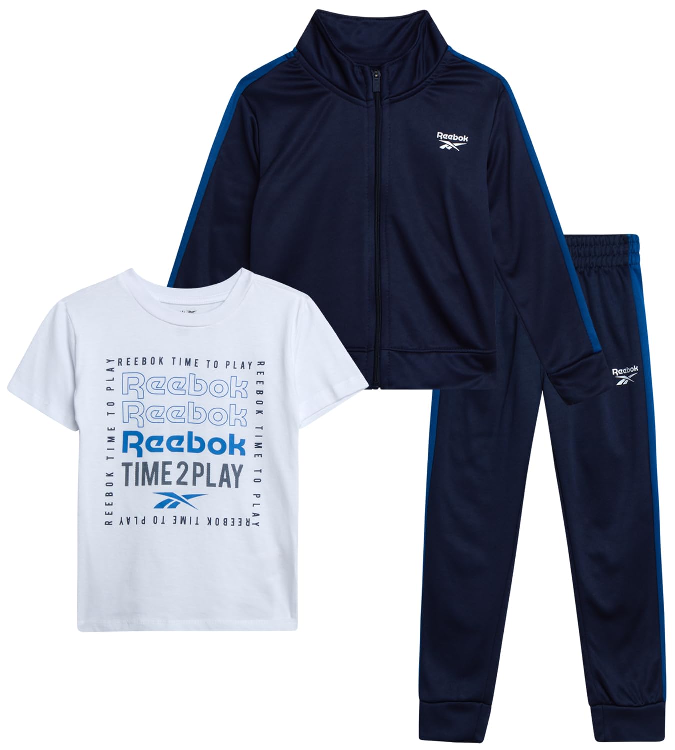 Reebok Boys Jogger Set - 3 Piece Athletic Tracksuit with Tricot Zip Jacket, T-Shirt, and Jogger Sweatpants for Boys|Clothing