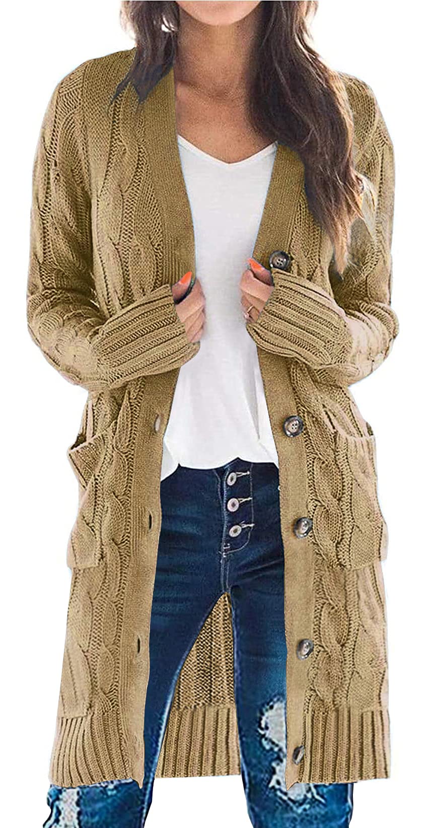 PRETTYGARDEN Long Sleeve Cable Knit Long Cardigan for Women 2025 Fall Winter Chunky Open Front Button Sweaters with Pockets|Clothing