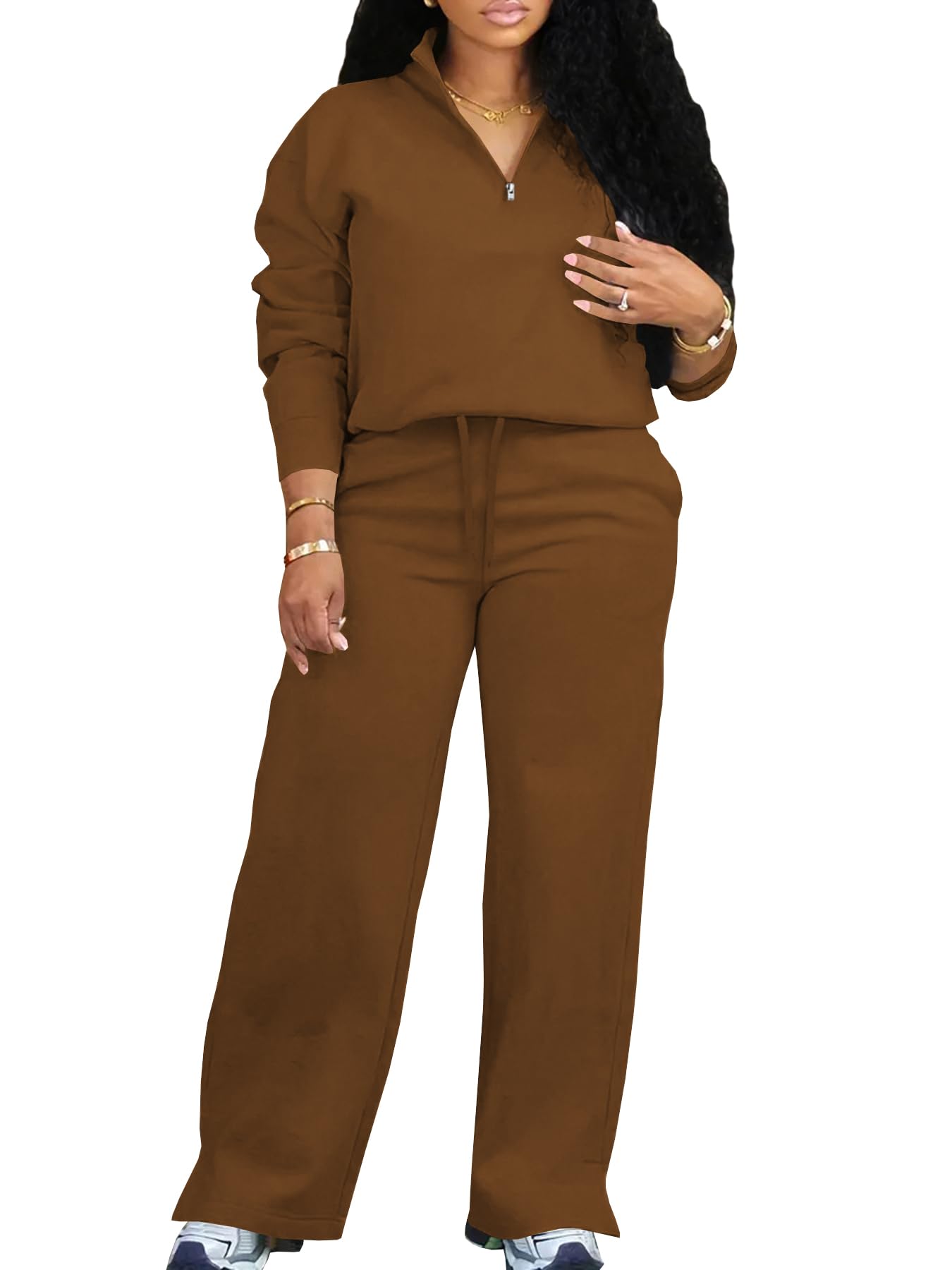 MOEENCN Women 2 Piece Outfits Sweatsuit Oversized Half Zip Sweatshirt Wide Leg Sweatpant Casual Lounge Matching Set Tracksuit|Clothing