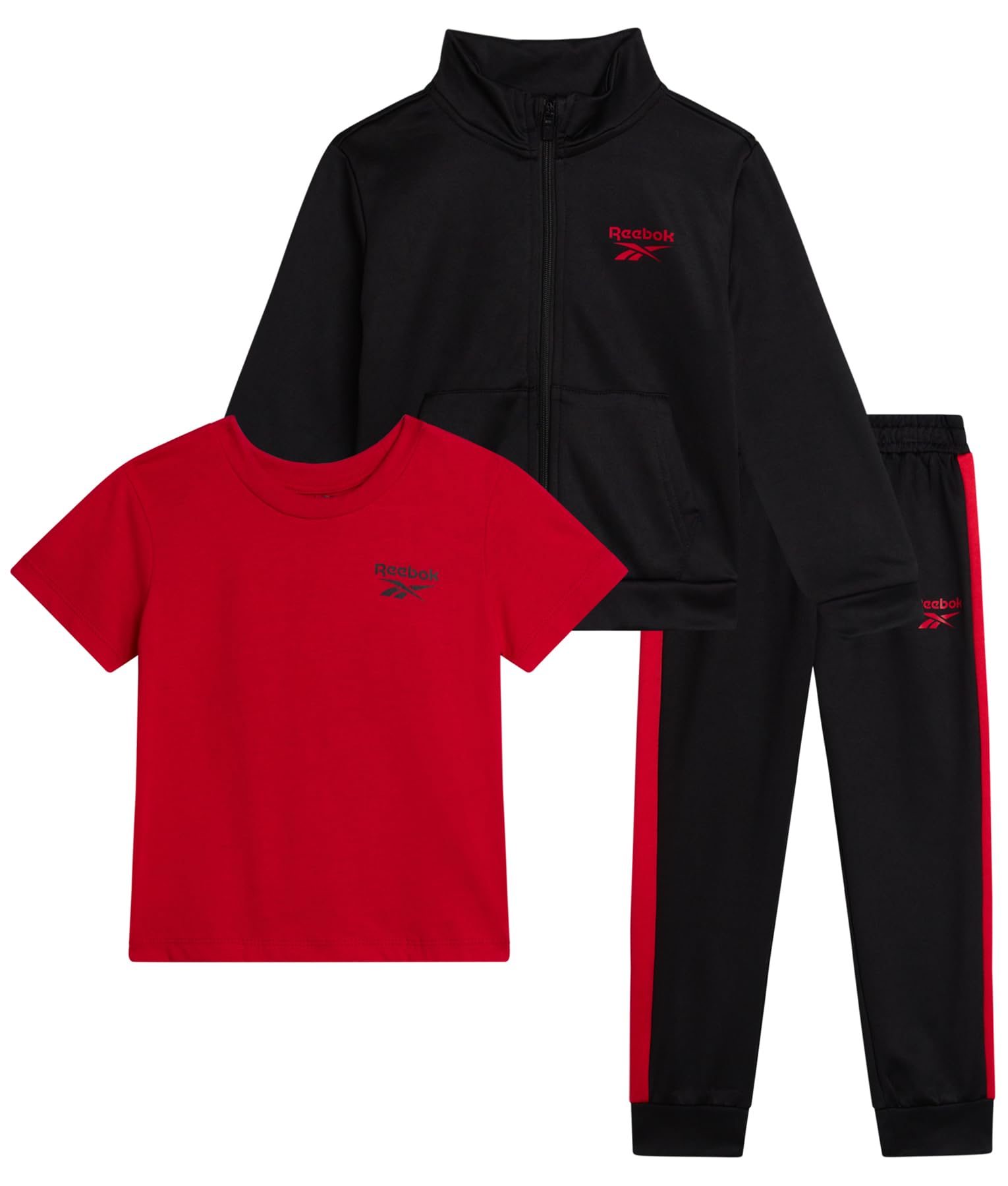 Reebok Baby Boy Pants Set - 3 Piece Tricot Fleece Jogger Pants Short Sleeve T Shirt & Track Jacket for Toddlers & Infants|Clothing
