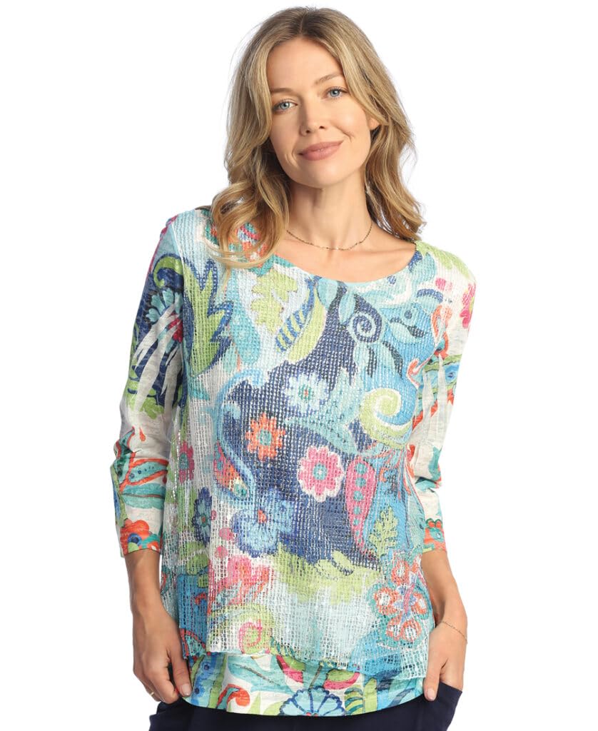 Jess & Jane Women's Windmill Boucle Mesh Tunic Top with Burn-Out Lining|Clothing