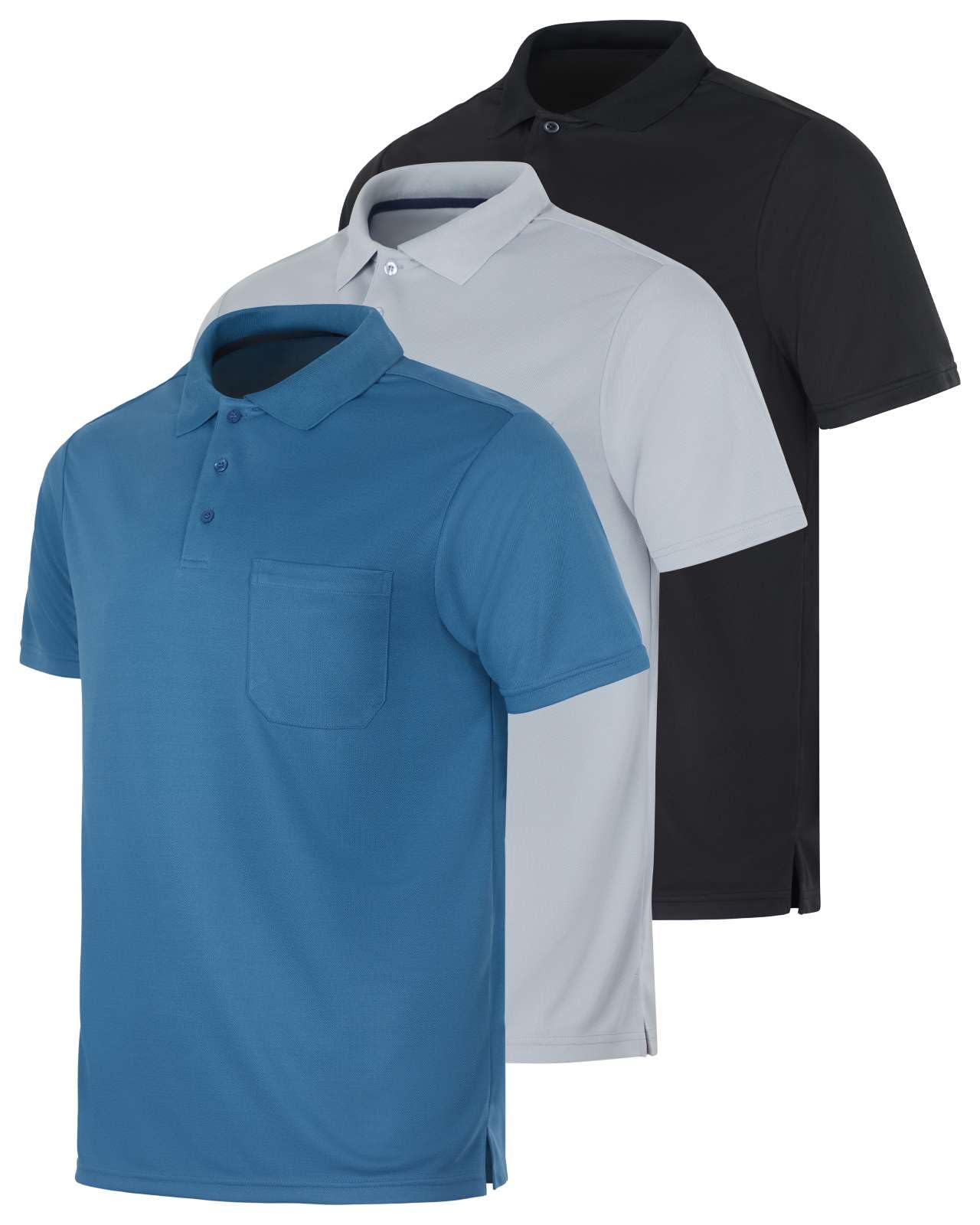 Real Essentials 3 Pack: Mens Short Sleeve Dry-Fit Collared Polo Shirt with Pocket - Active Casual (Available Big & Tall)|Clothing