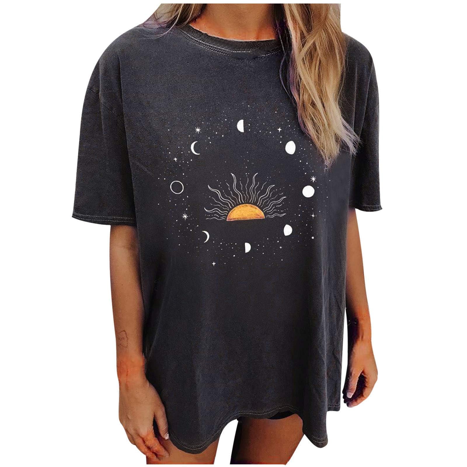 Wukreran Oversized Tops for Women Short Sleeve Shirts Dressy Casual Plus Size Cute Graphic Tees Summer Loose Fit T-Shirts|Clothing