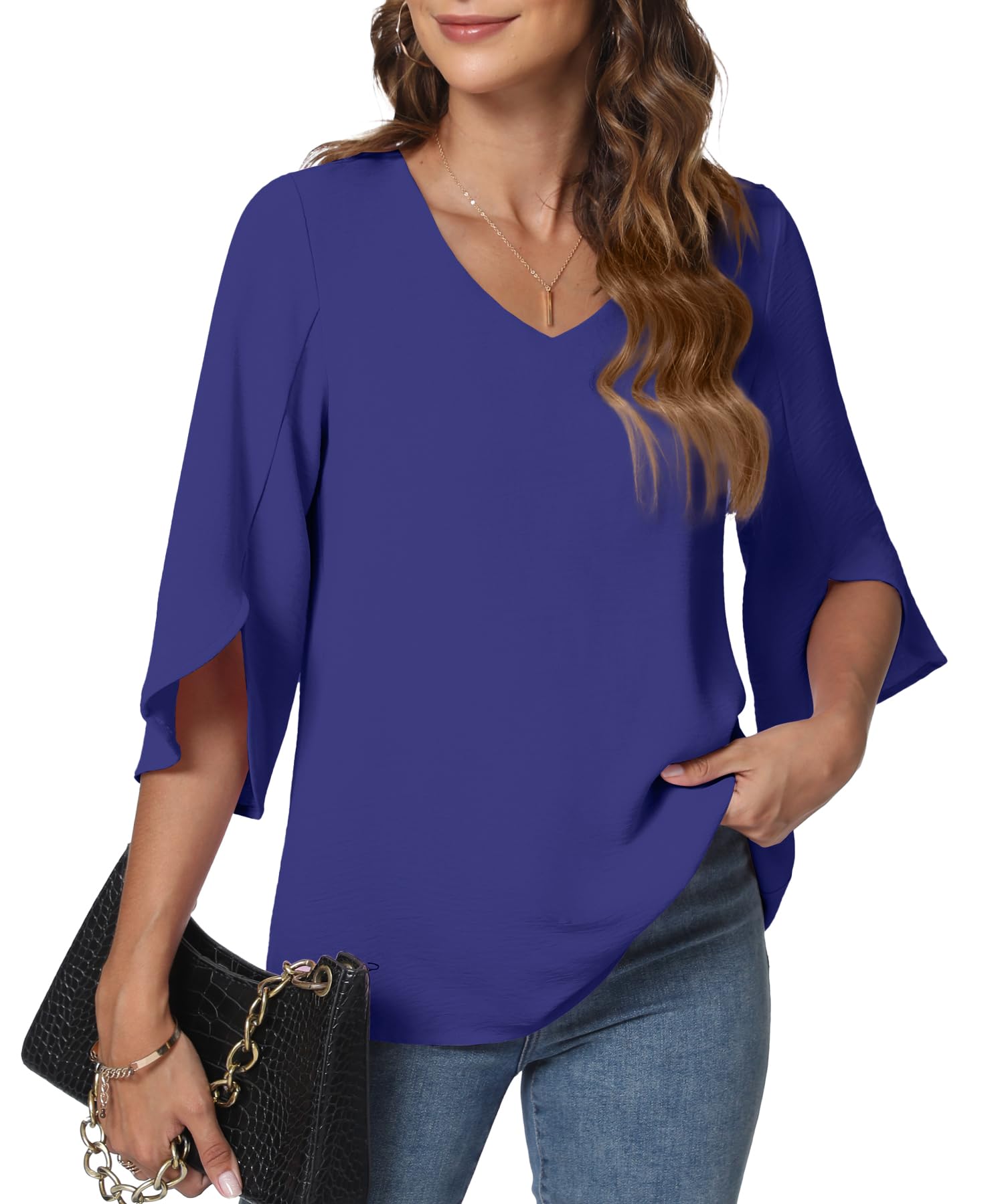 KUOTAI Womens Summer Tops Dressy Casual Shirts 3/4 Sleeve V Neck Work Blouse Business Casual Shirts|Clothing
