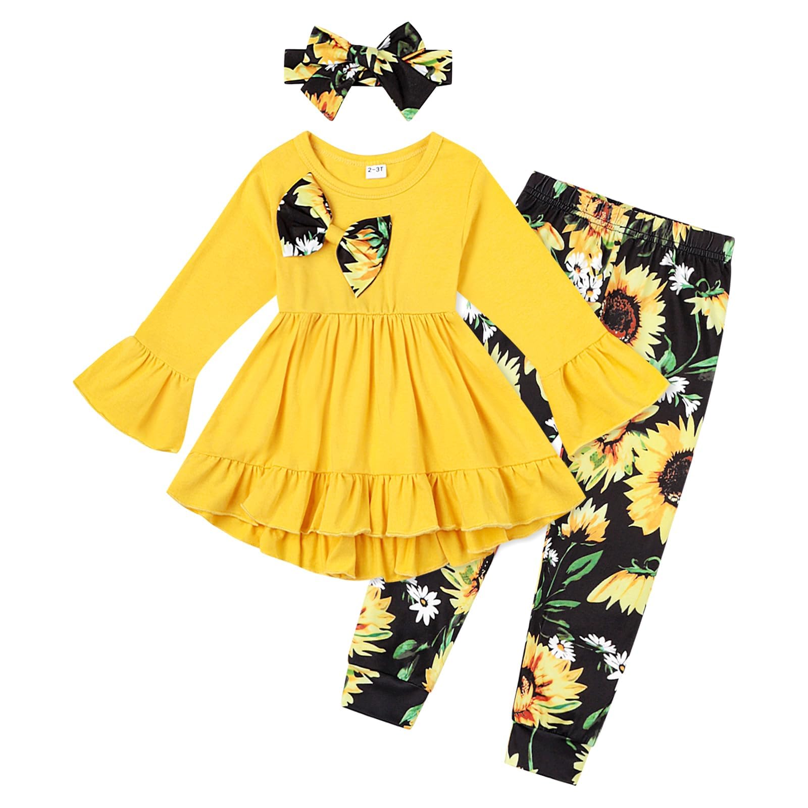 Ayzozuy Toddler Baby Girl Clothes Floral Outfit Ruffle Sleeve Shirt with Headband 3PC Pant Set Fall Clothing for Girl|Clothing