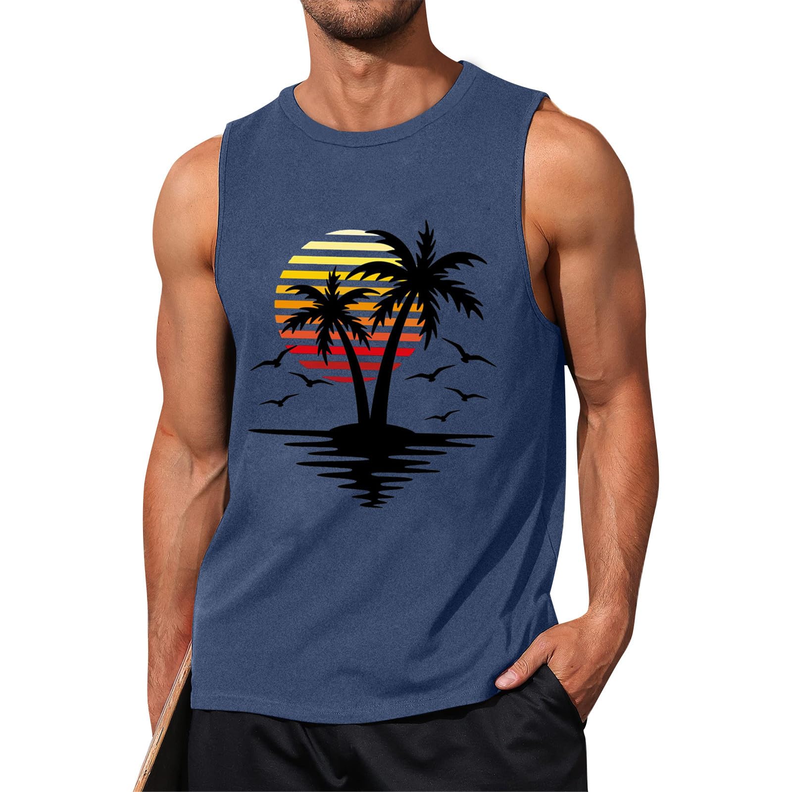 Ymosrh Men's Sleeveless Tank Tops Workout Muscle Gym Shirt Crewneck Summer Beach Vacation Breathable Tees, S-3XL|Clothing