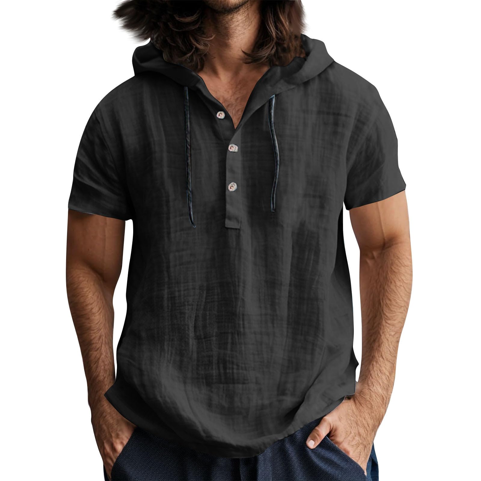 Linen Shirts for Men Lightweight Button Up Long Sleeve Shirts with Hood Loose Fit Breathable Boho Beach Linen Hoodie|Clothing
