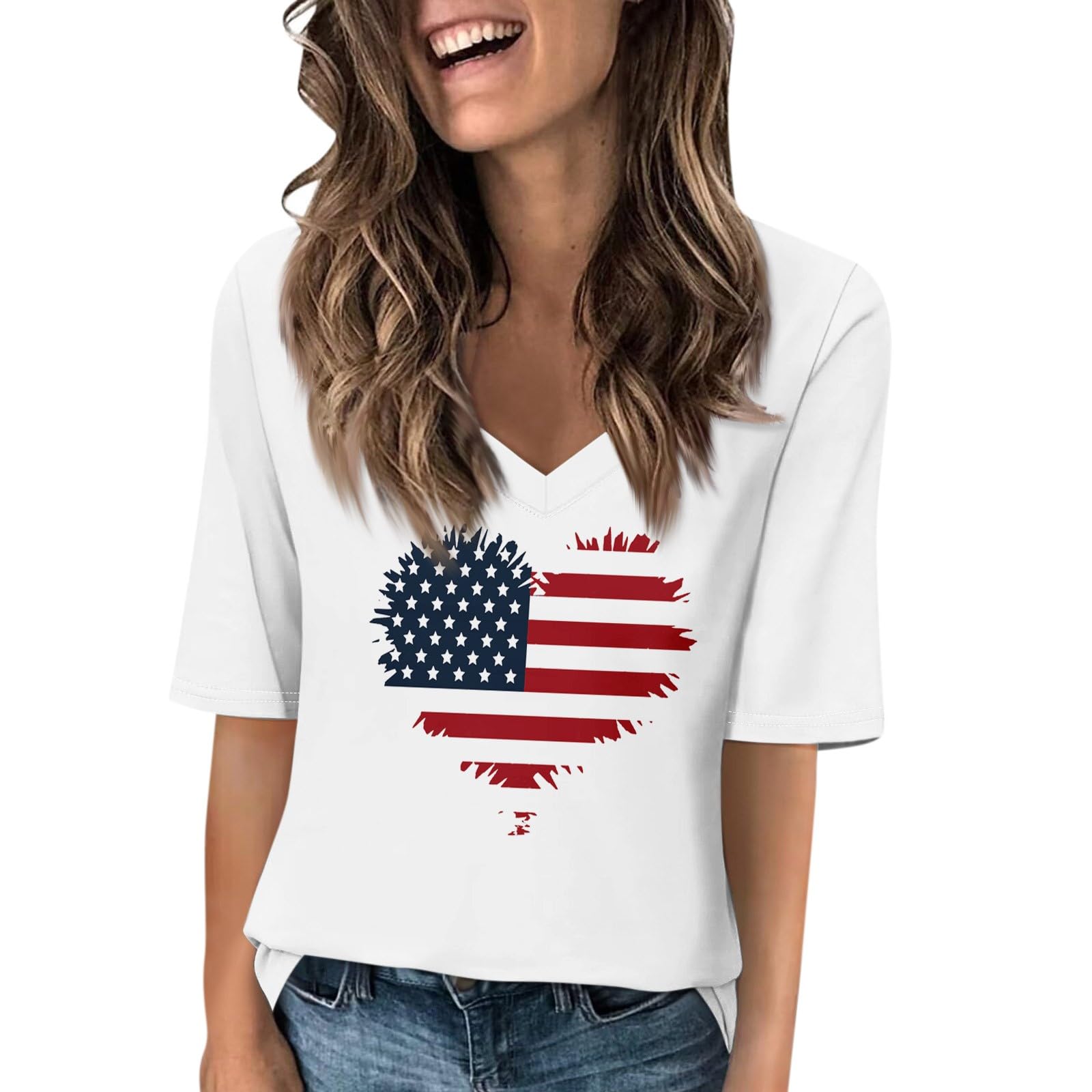 WJDNHKYD Womens 2024 Summer Half Sleeve Tops Casual V Neck Summer Shirts Loose Fit Elbow Length Sleeve Blouses|Clothing