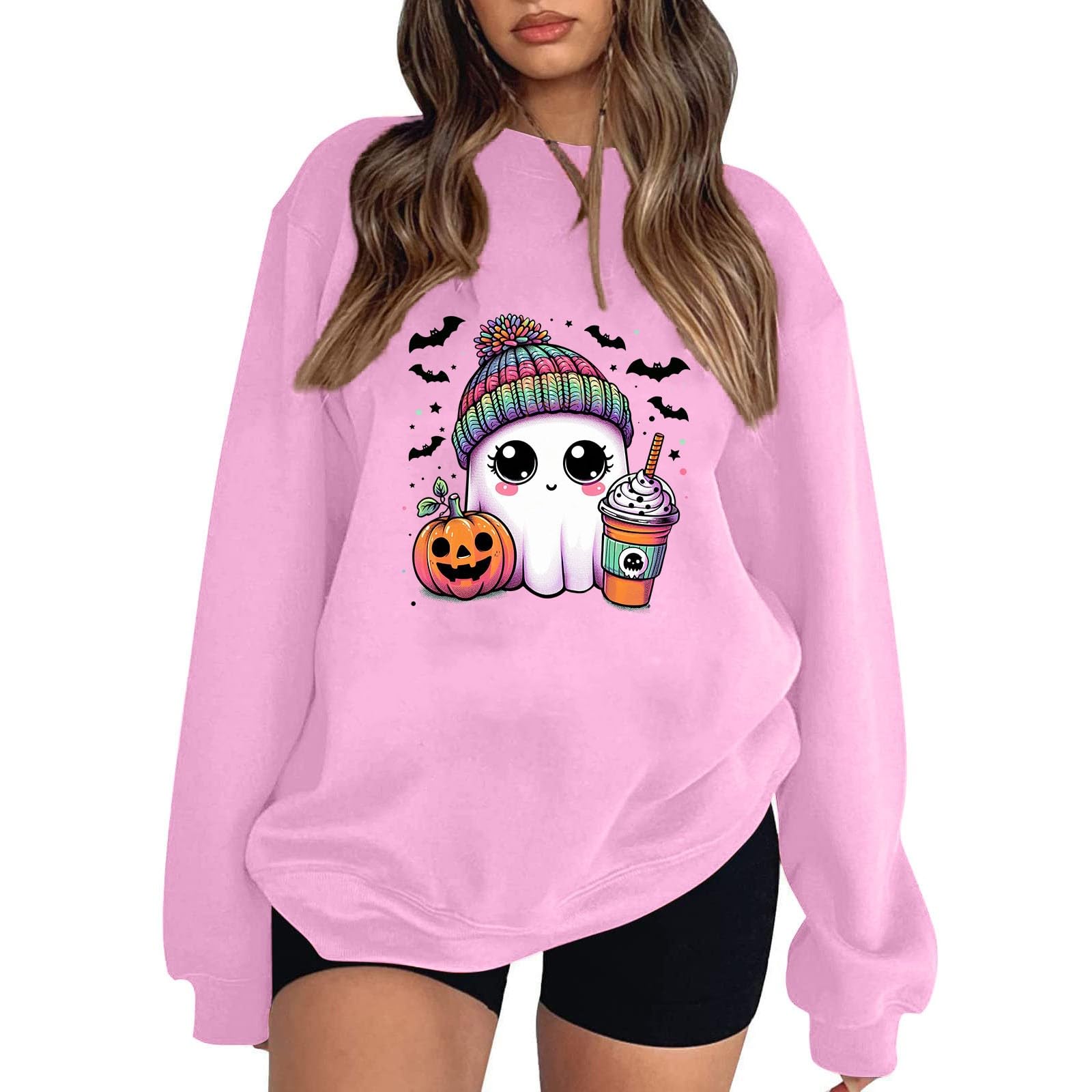 ADHOWBEW Womens Halloween Sweatshirt 2025 Cute Fall Oversized Crewneck Ghost Graphic Spooky Long Sleeve Funny Pullover|Clothing