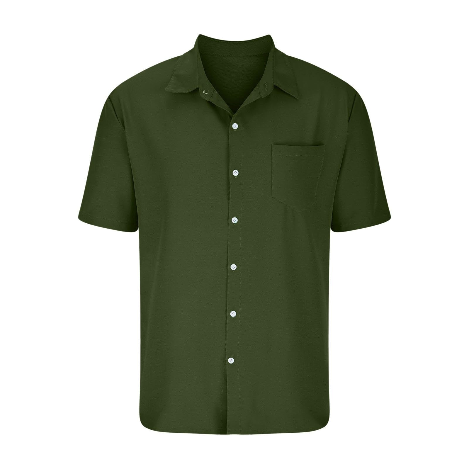 RTRDE Men's Casual Button Down Shirts Short Sleeve Solid Color Summer Beach Dress Collared Shirt with Pocket, M-5XL|Clothing