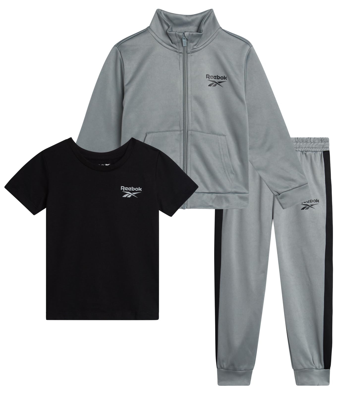 Reebok Baby Boy Pants Set - 3 Piece Tricot Fleece Jogger Pants Short Sleeve T Shirt & Track Jacket for Toddlers & Infants|Clothing