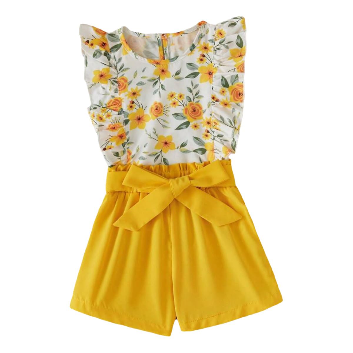 KIDLAGA Kids Toddler Girls Clothes Outfits Floral Print Ruffle Sleeveless Top Belted Shorts Set Summer Clothing Set|Clothing