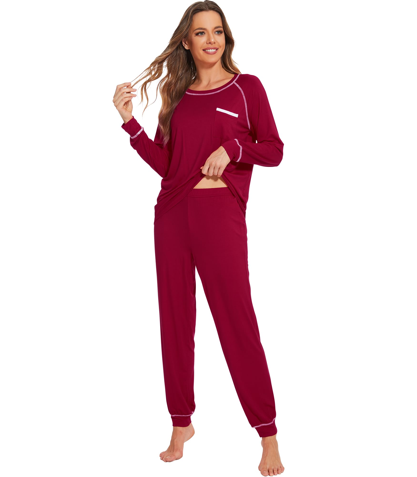 WiWi Bamboo Viscose Pajamas Set for Women Cooling Long Sleeve Sleepwear Super Soft Loungewear Pjs Jogger Pants Lounge S-XXL|Clothing