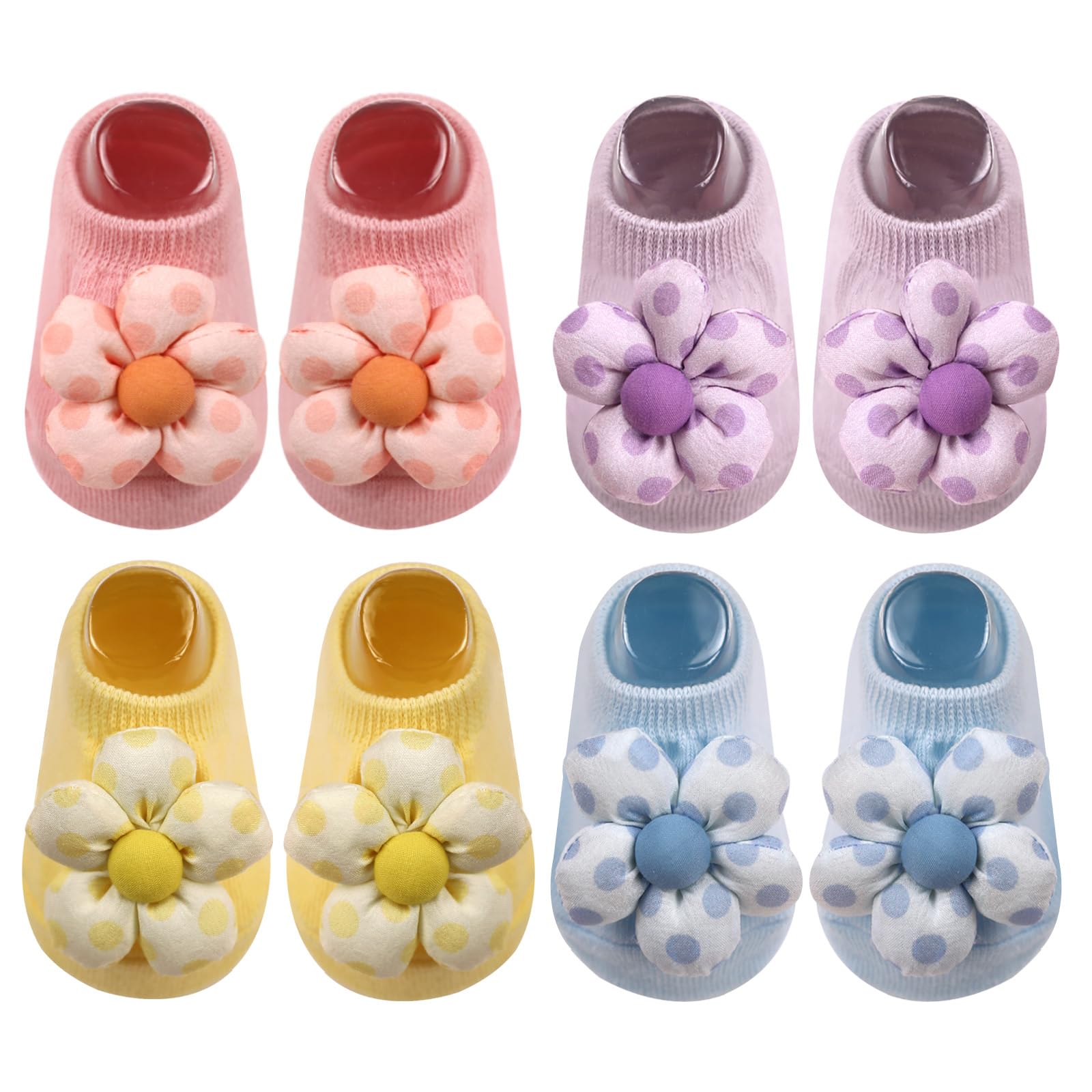 MIUXUESO 4 Pairs Baby Girl Socks, Flower Non-Slip Low Ankle Socks with Grips for Newborn Toddler Infants|Clothing