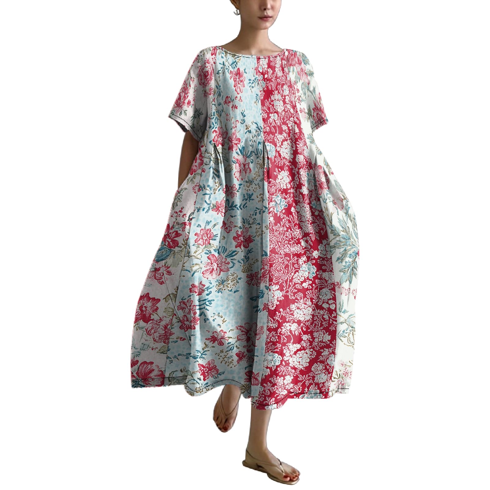 MARSVOVO Floral Dress for Women Short Sleeve Dress with Pockets Crew Neck A-line Flowy Swing Casual Plus Size Maxi Dress|Clothing
