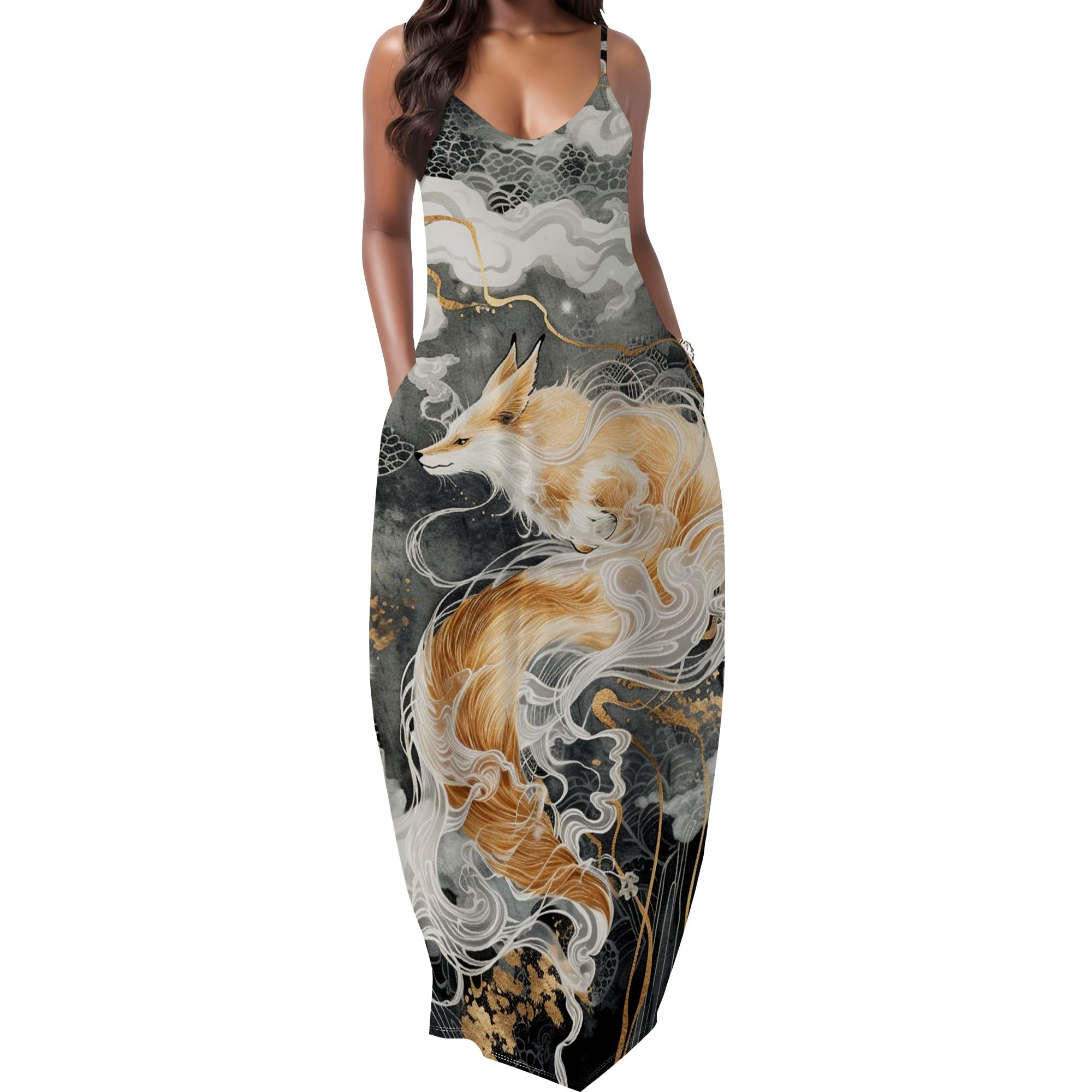 MARSVOVO Summer Dress Sleeveless Fashion Plus Size Spaghetti Strap Sundress with Pockets Plus Size Maxi Dress|Clothing