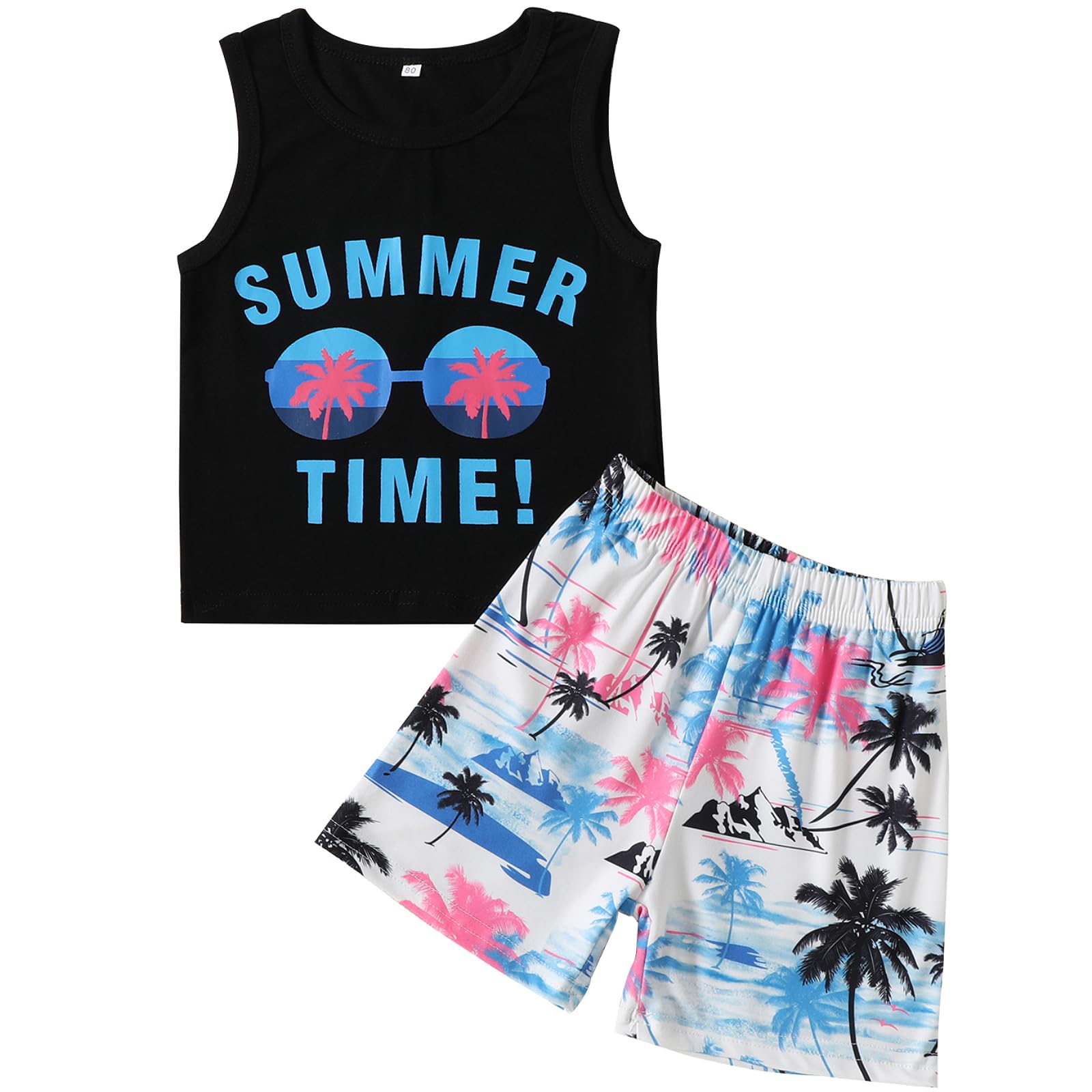 Kionio Baby Boy Clothes Toddler Boy Summer Outfits Kids Sleeveless Tank Tops Shorts Set Letter Print Hawaii Beach Clothes|Clothing