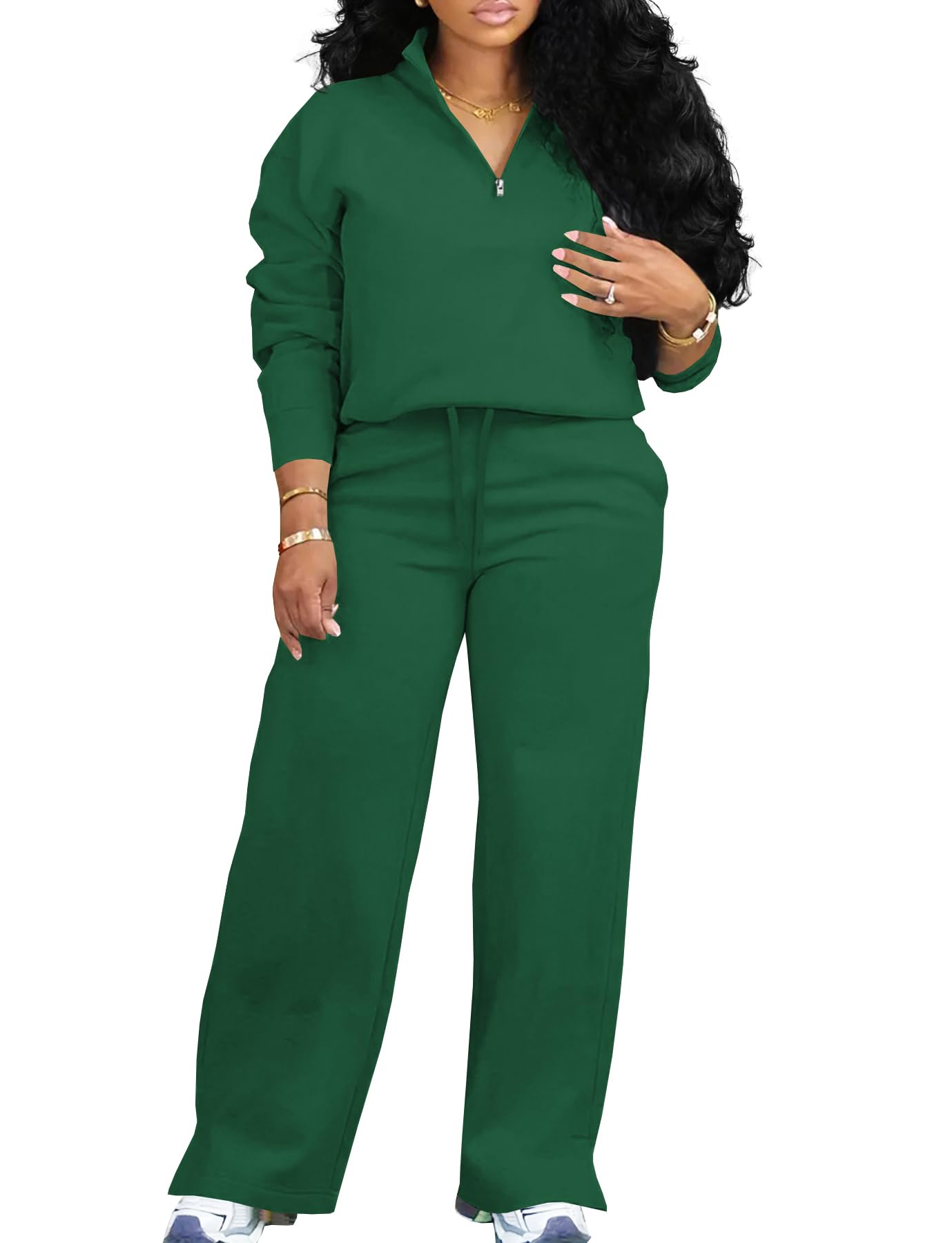 MOEENCN Women 2 Piece Outfits Sweatsuit Oversized Half Zip Sweatshirt Wide Leg Sweatpant Casual Lounge Matching Set Tracksuit|Clothing