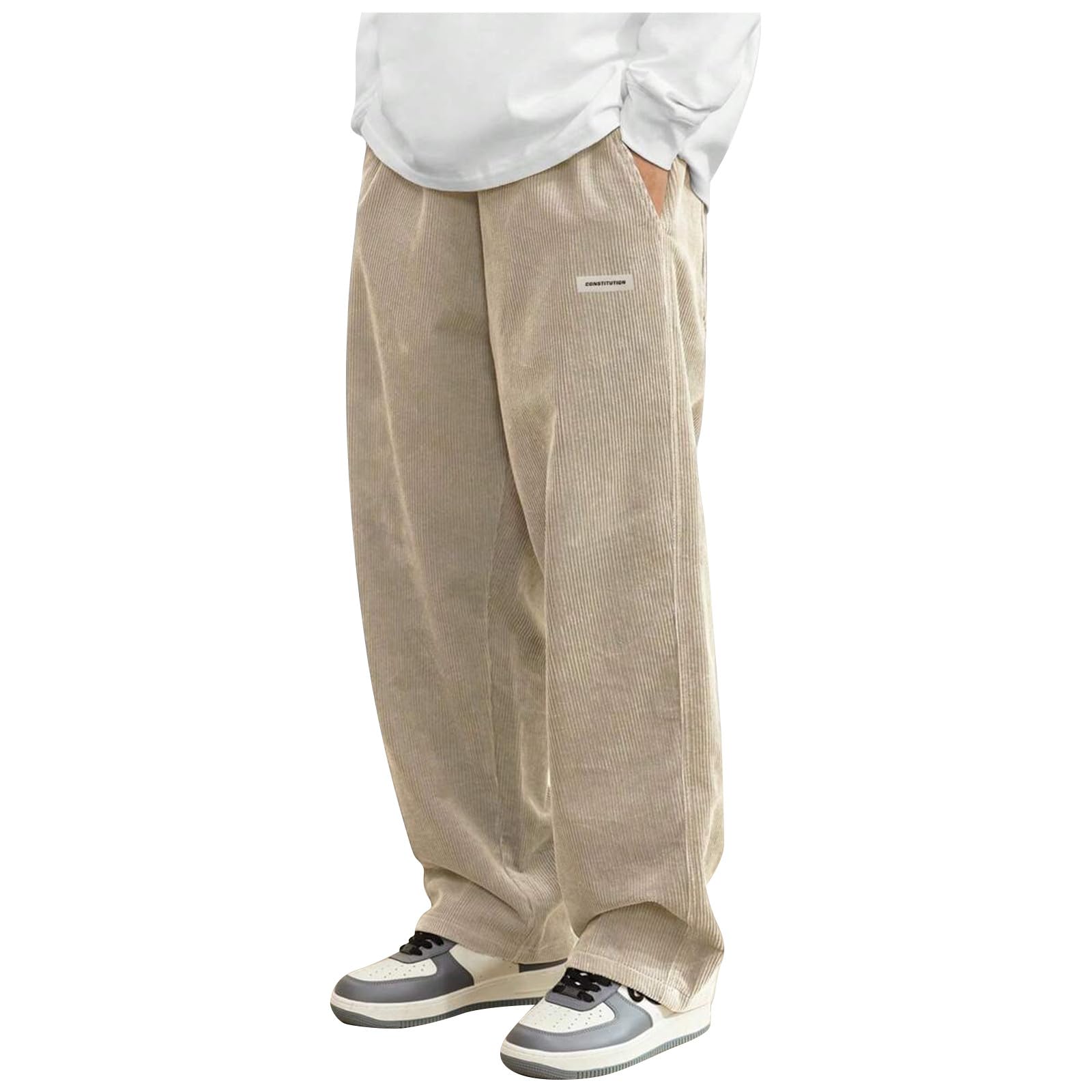 Corduroy Pants Men Baggy Casual Comfy Elastic Waist Work Pants with Pockets Relaxed Fit Straight Leg Cord Pants|Clothing
