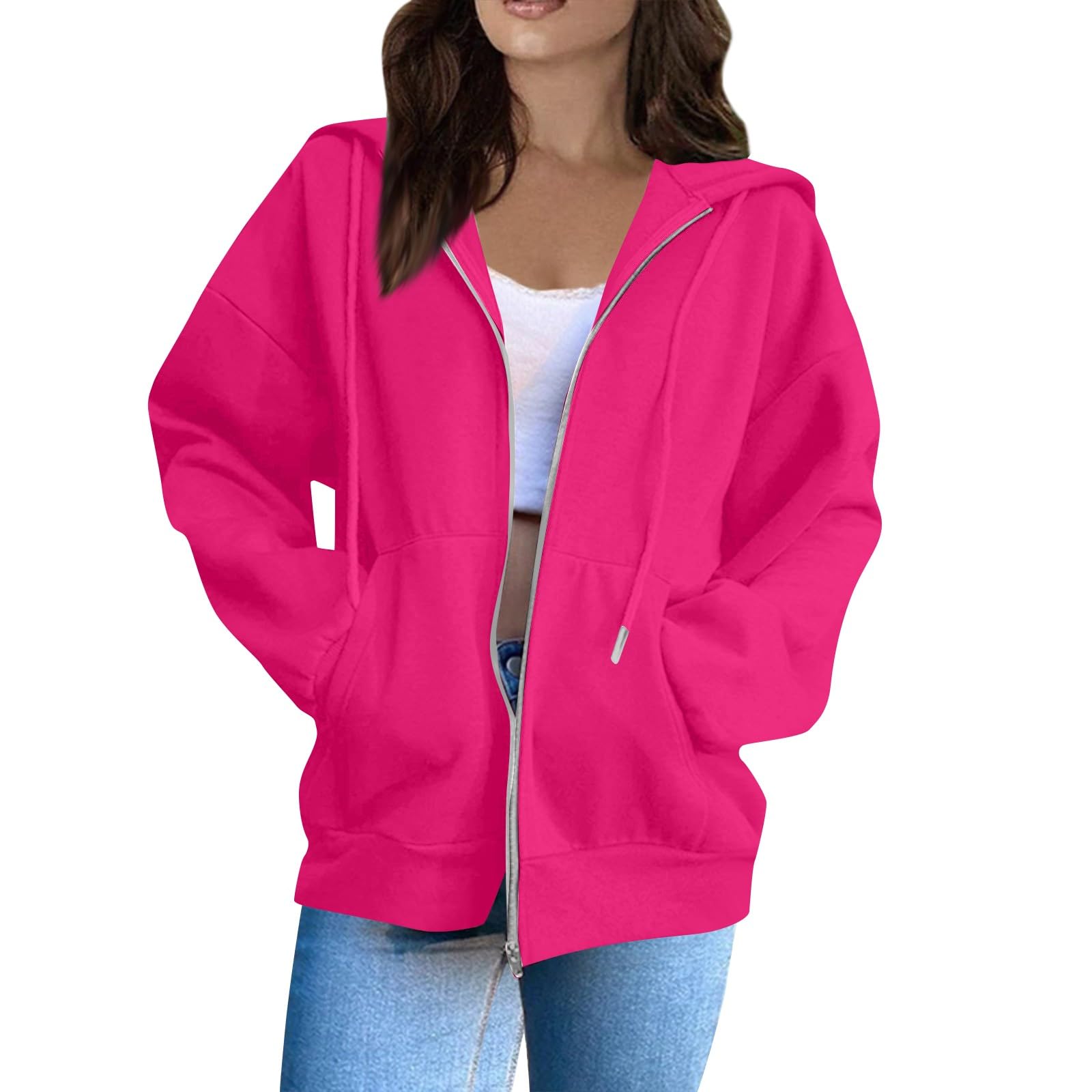 LPIGOH Zip Up Hoodie Women Casual Oversized Sweatshirts - Fall Fashion Fleece Lined Jacket - Thick Warm Coat Winter Clothing|Clothing