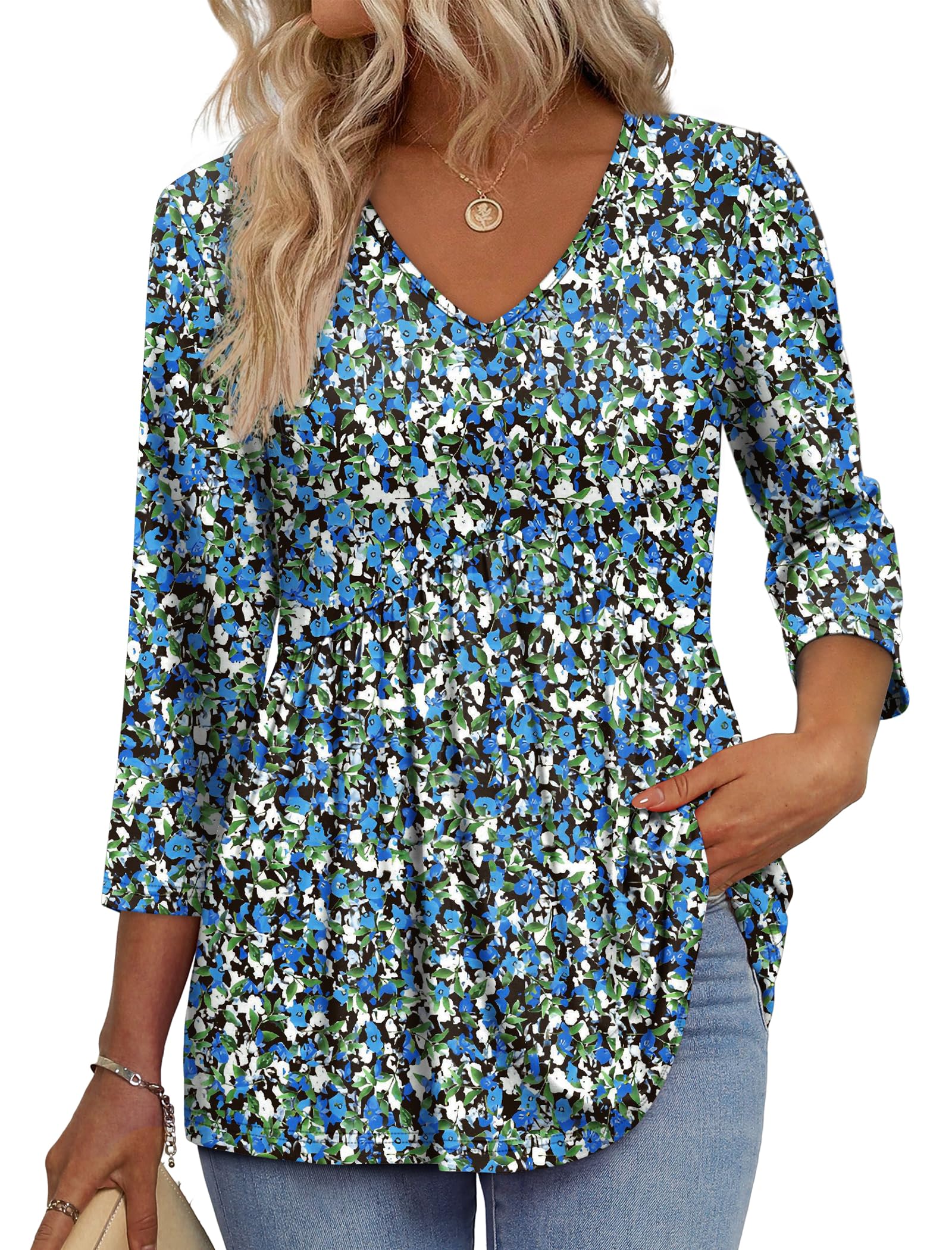 3/4 Length Sleeve Womens Tops 2025 Blouses for Women Dressy Casual Fashion Clothing V Neck Babydoll Tops Fall Outfits|Clothing