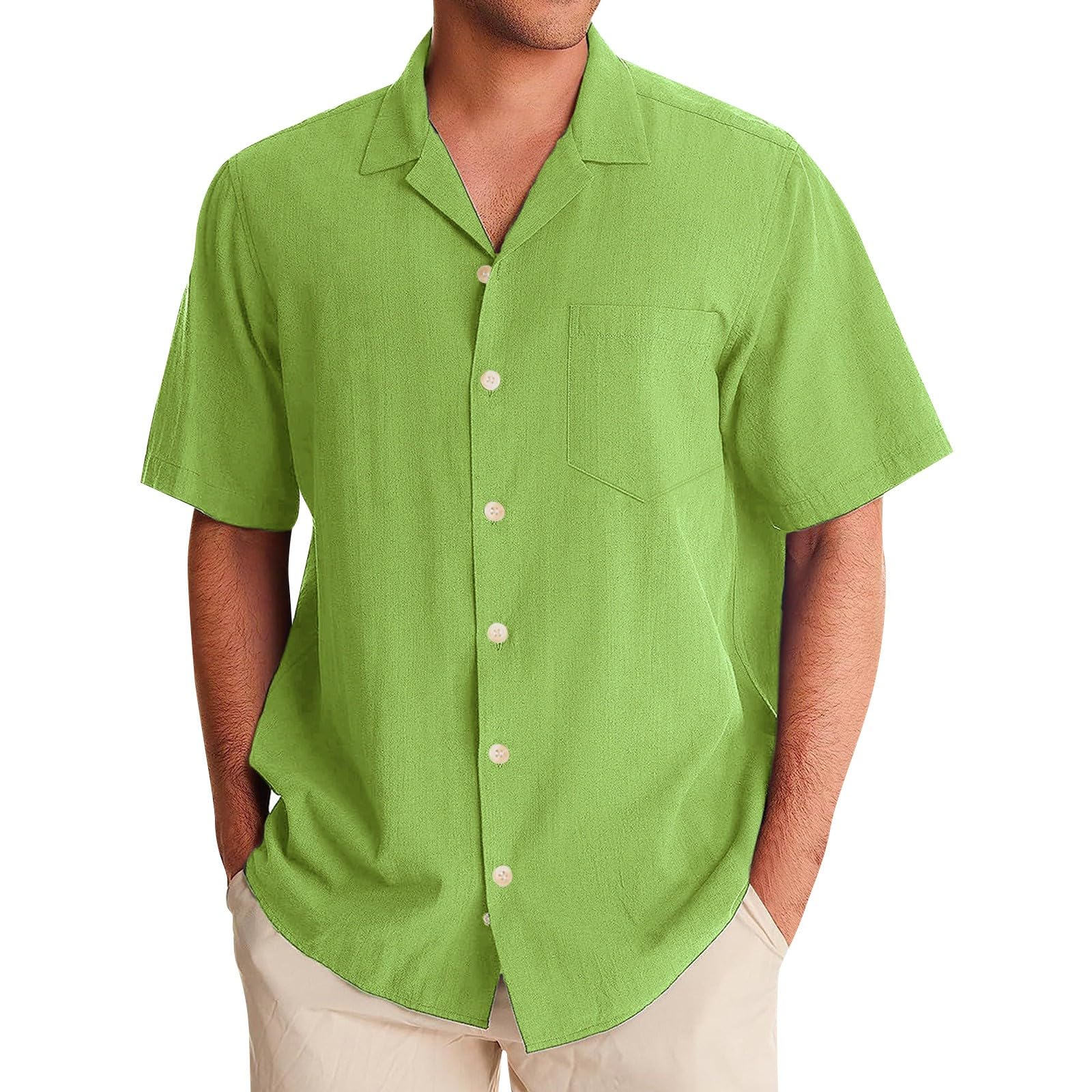 Men's Button Up Cuban Guayabera Shirt Casual Short Sleeve Solid Color Buttons Down Summer Dress Shirts Tops, M-5XL|Clothing