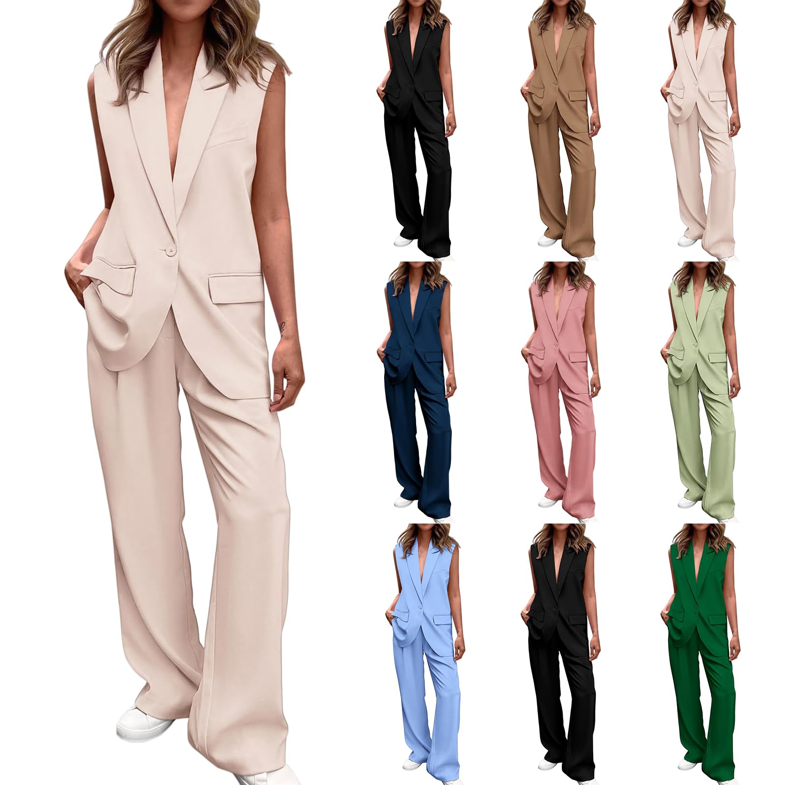 Tednrk Two Piece Sets for Women Summer Casual Sleeveless V Neck Blazer Vest Wide Leg Pant 2025 Work Office Outfits|Clothing