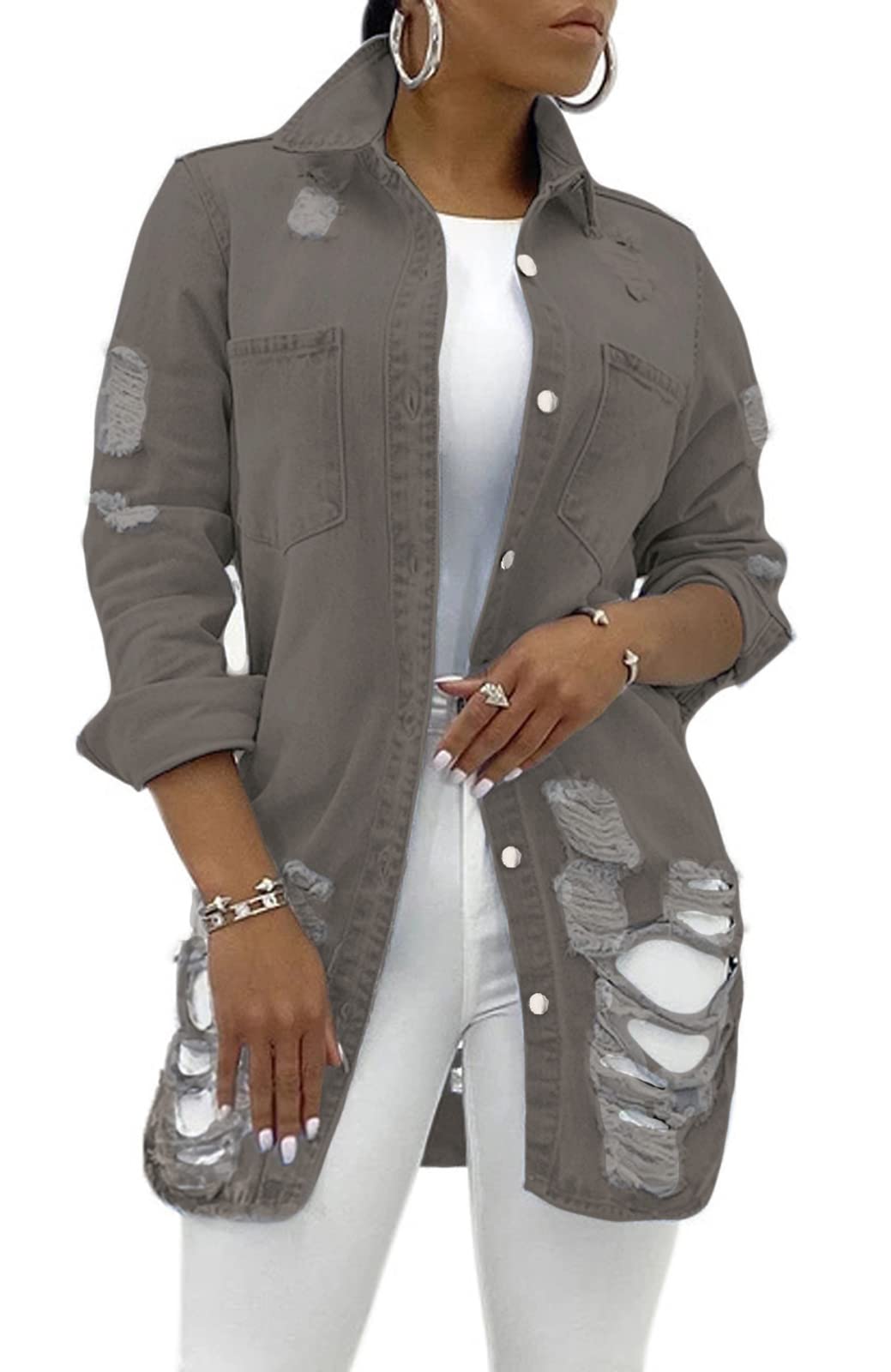 SeNight Women's Jean Jacket Long Sleeve Classic Distressed Fray Hem Tassels Denim Trucker Jackets|Clothing