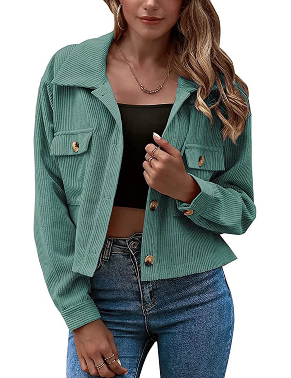 Gihuo Women's Fashion Cropped Shacket Button Down Corduroy Shacket Jackets Casual Plaid Long Sleeve Crop Jackets Tops|Clothing