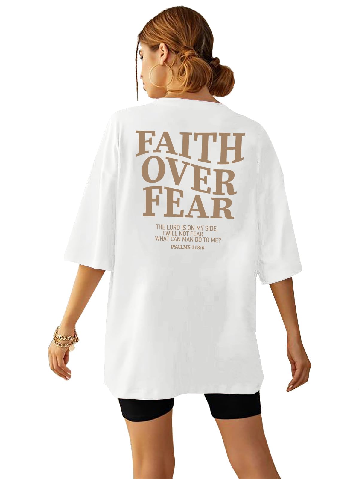 BANGELY Faith Over Fear Shirt Women Graphic Shirts Oversized Workout Gym Christian Religious Tees Drop Shoulder Tee Tops|Clothing