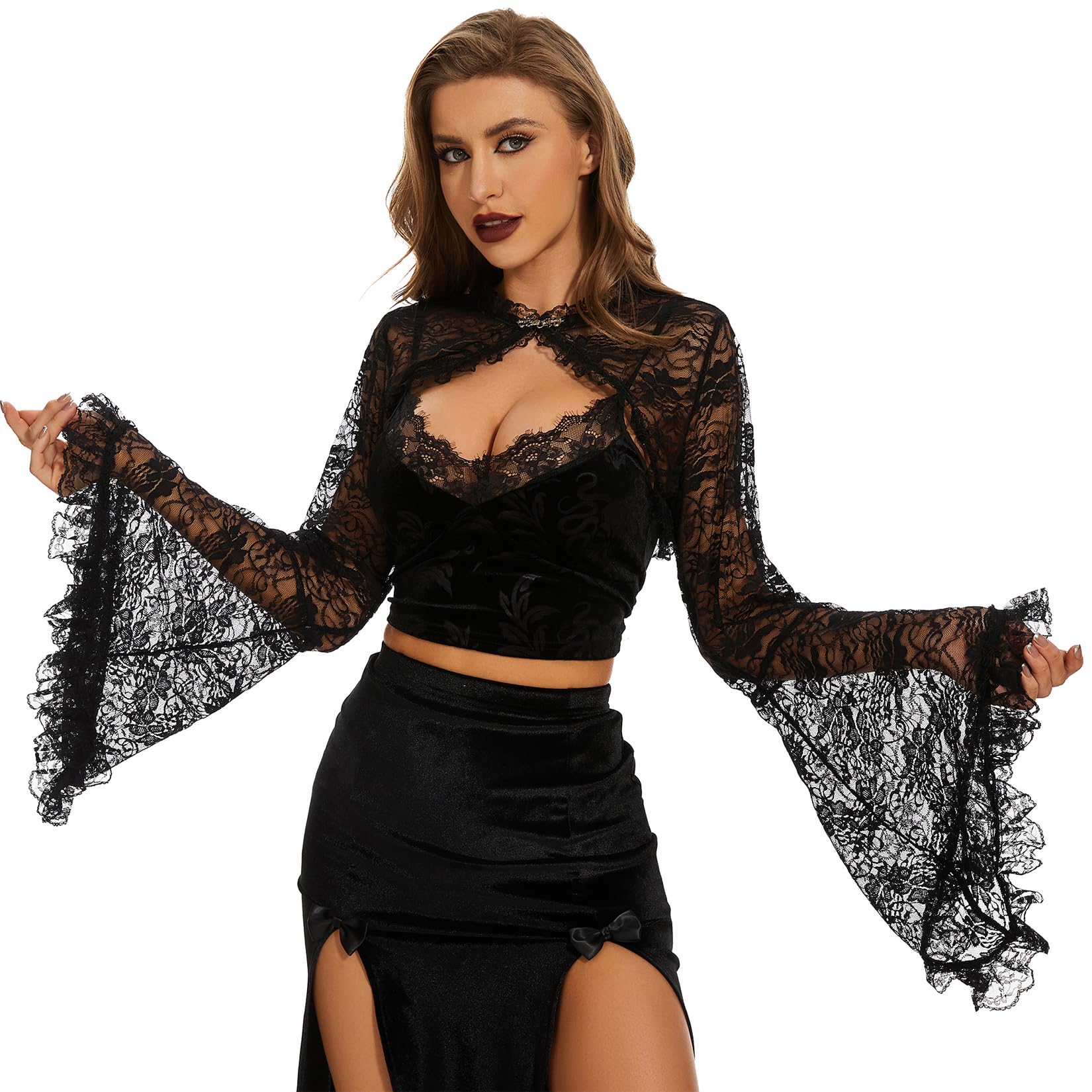 Century Star Mesh Crop Tops for Women See Through Shrug Long Sleeve Open Front Fishnet Cover Up Sexy Rave Outfits Sheer|Clothing