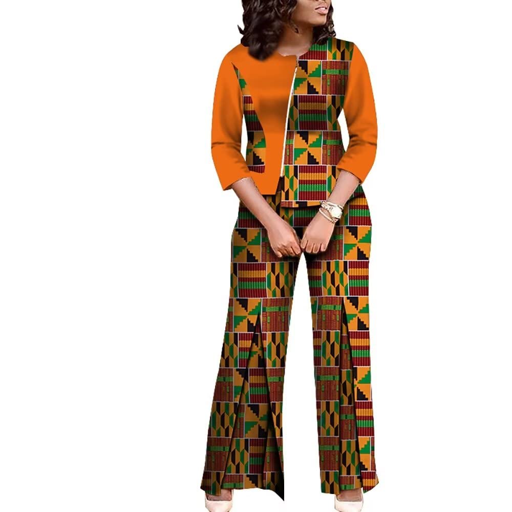 African Outfits for Women Bazin Riche 2 Pieces Suit Top and Pants Set Traditional Cotton Clothing WY4116|Clothing