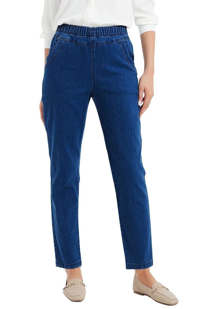 Soojun Women's Elastic Waist Jeans Stretch Pull On Pants|Clothing