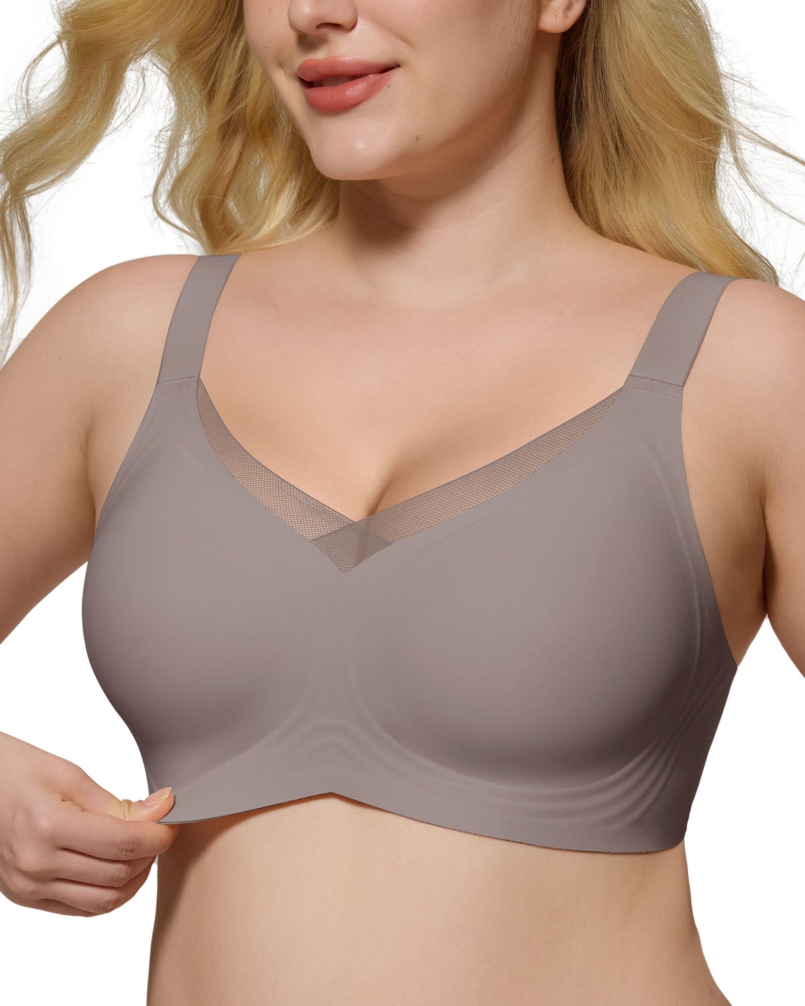 HORISUN Seamless Mesh Lace Bras for Women No Underwire Wireless Bras with Support and Lift Full Coverage Deep V Bralettes|Clothing