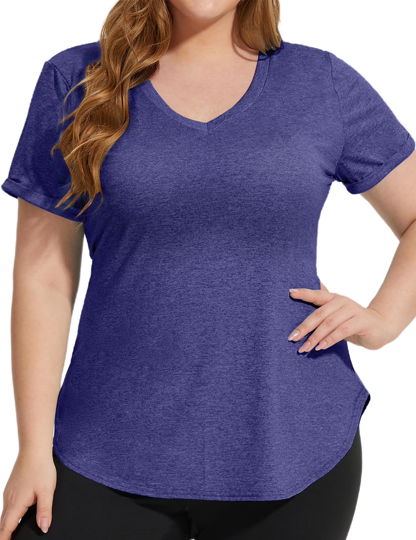 FOREYOND Plus Size Workout Tops for Women T Shirts Loose Fit V Neck Clothing Yoga Casual Summer|Clothing