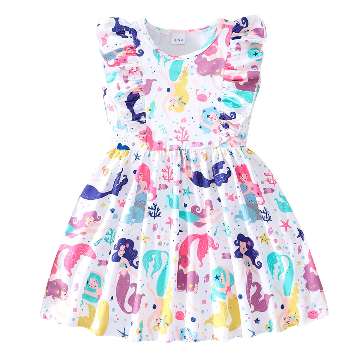 Little Girls A-line Dress Cute Leopard Mermaid Pattern Ruffle Sundress Toddler Girl Casual Dresses for Party 2-7Y|Clothing