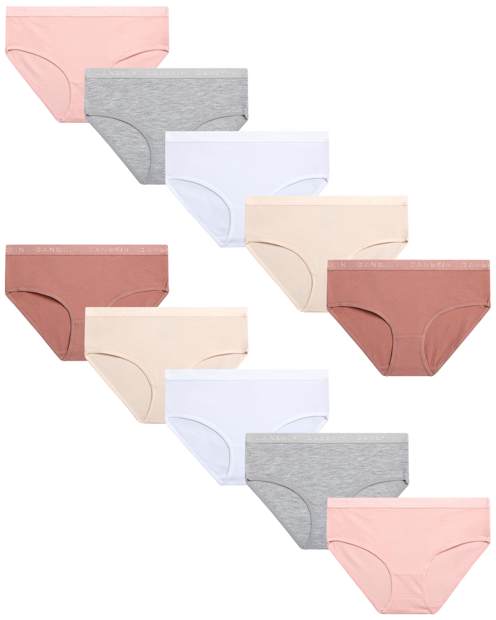 Danskin Girls Underwear Hipster Briefs - 10 Pack Comfort Stretch Breathable Cotton Underwear Hipster Panties for Girls (4-12)|Clothing