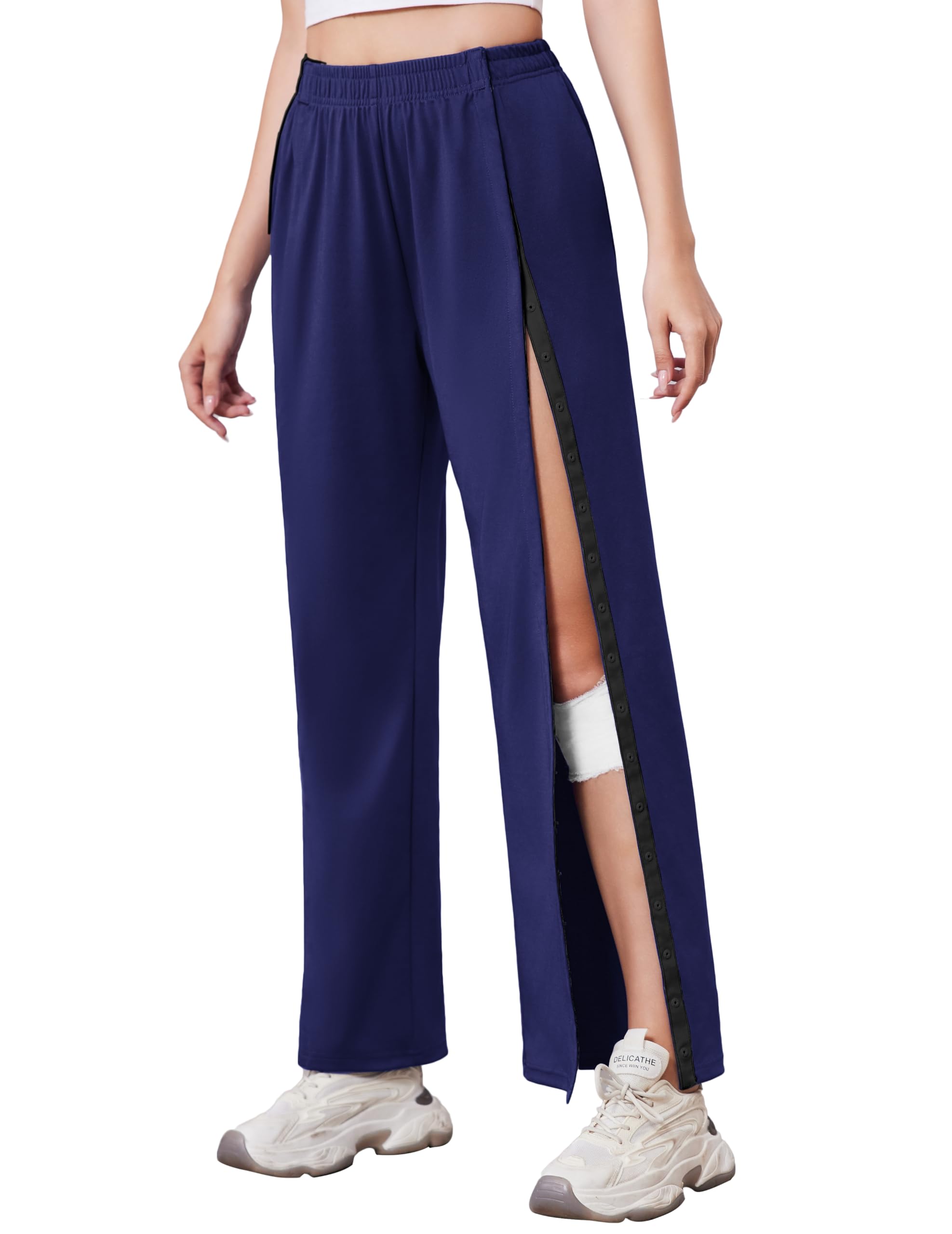 Deyeek Tear Away Pants for Women Side Slit Snap Sweatpants Loose Fit Post Surgery Casual Adaptive Clothing with Pockets Navy Blue|Clothing