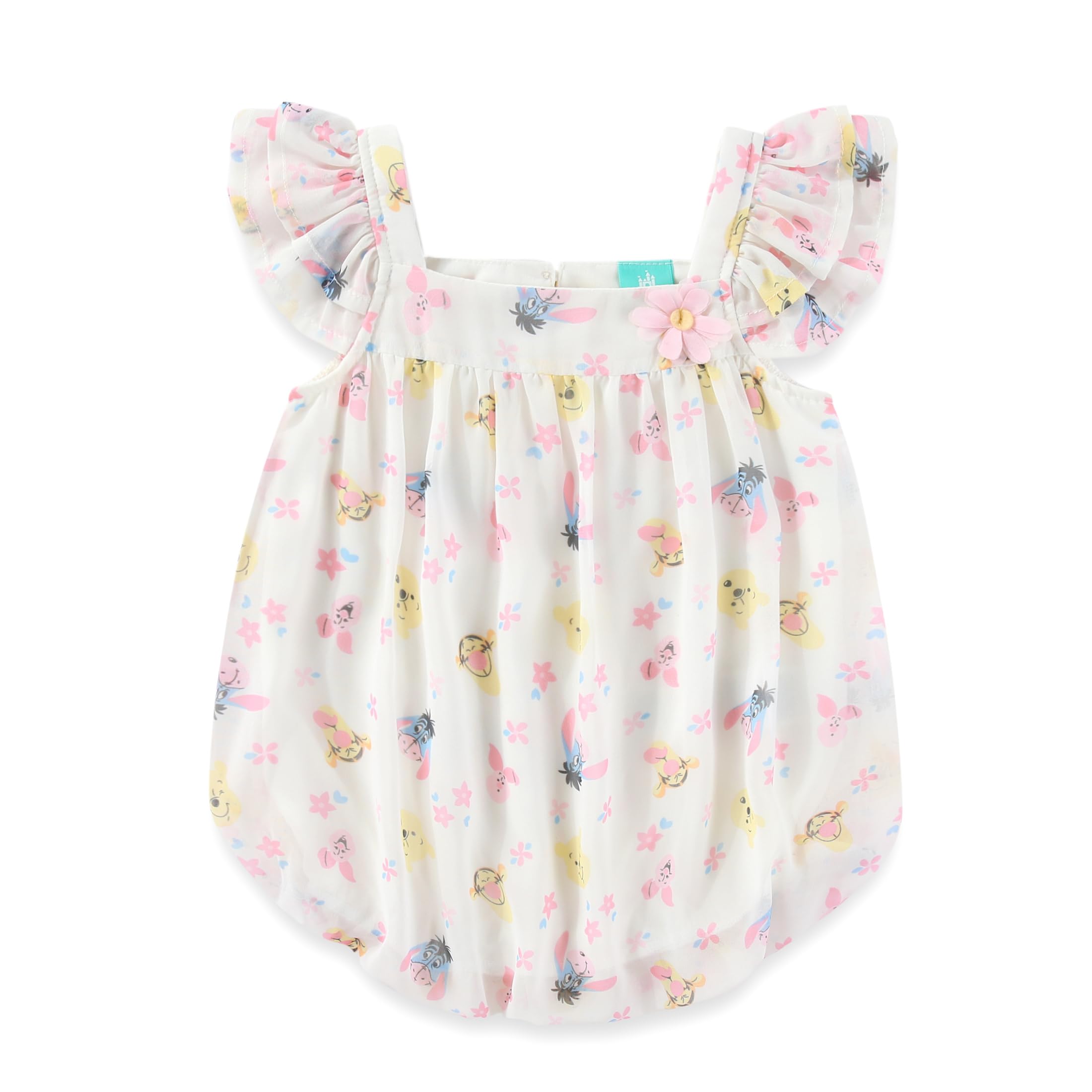Disney Winnie the Pooh Minnie Mouse Baby Girls All Over Print Chiffon Bubble Romper for Newborn and Infant|Clothing