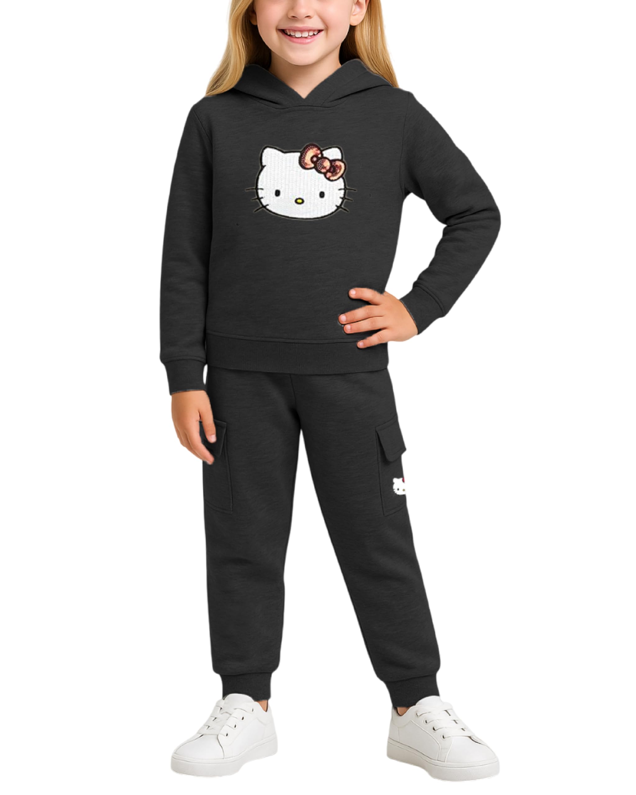 Hello Kitty Girls Pants Set - 2 Piece Girls Sweatshirt Hoodie and Cargo Sweatpants Matching Set with Pockets (2T-12)|Clothing