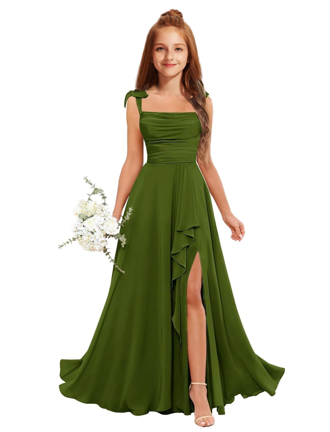 MRHUSH Junior Bridesmaid Dresses for Teen Girls Chiffon Flower Girl Dress Ruffles Wedding Guest Spaghetti Straps Party Gown|Clothing