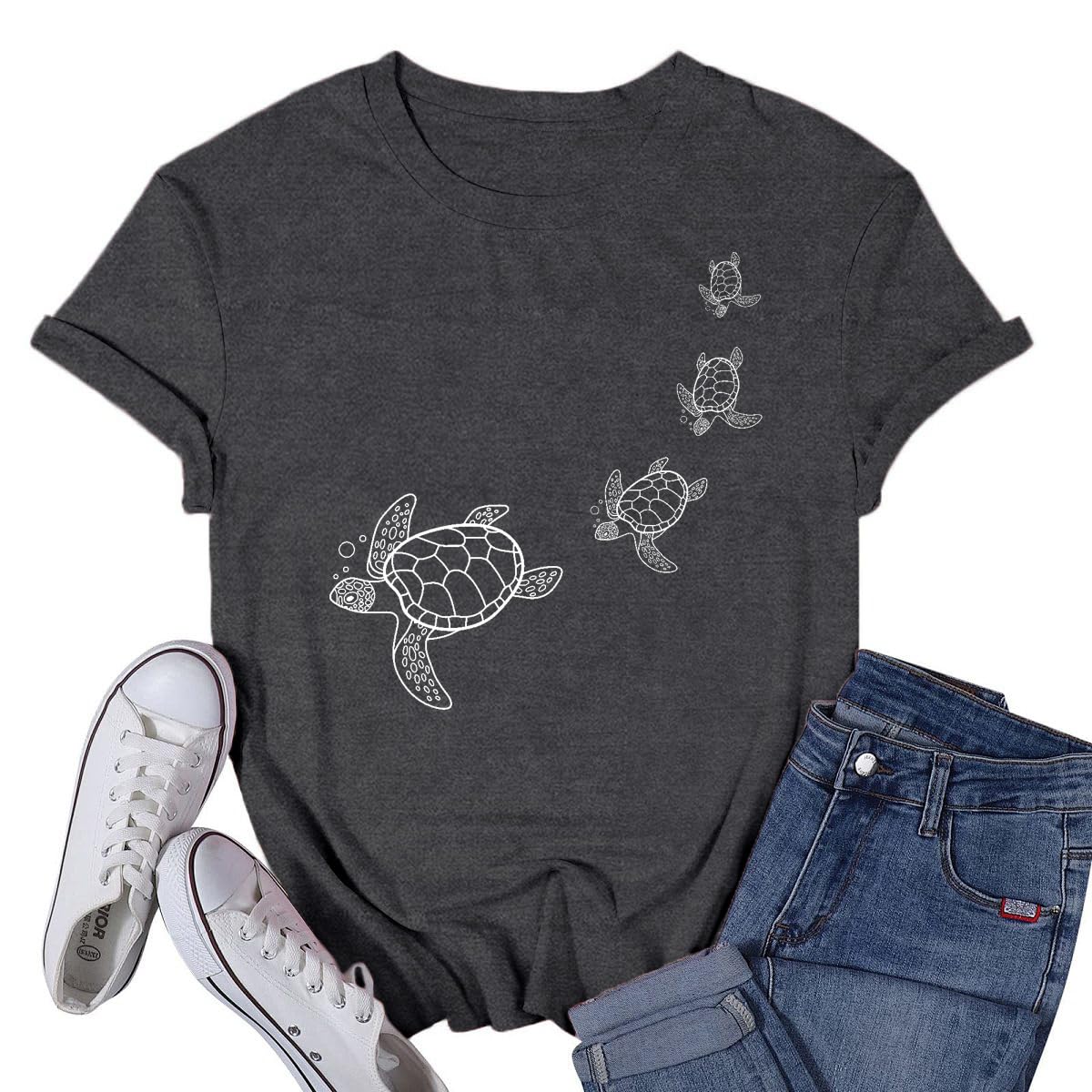 VQD Sea Turtle Shirts for Women Hawaiian Beach Tortoise T-Shirt Vacation Ocean Tee Tops|Clothing
