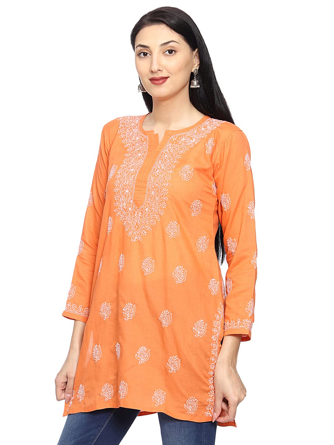 Ada Hand Embroidered Indian Clothing Chikankari Women's Cotton Top Tunic Shirt Kurti A210717|Clothing