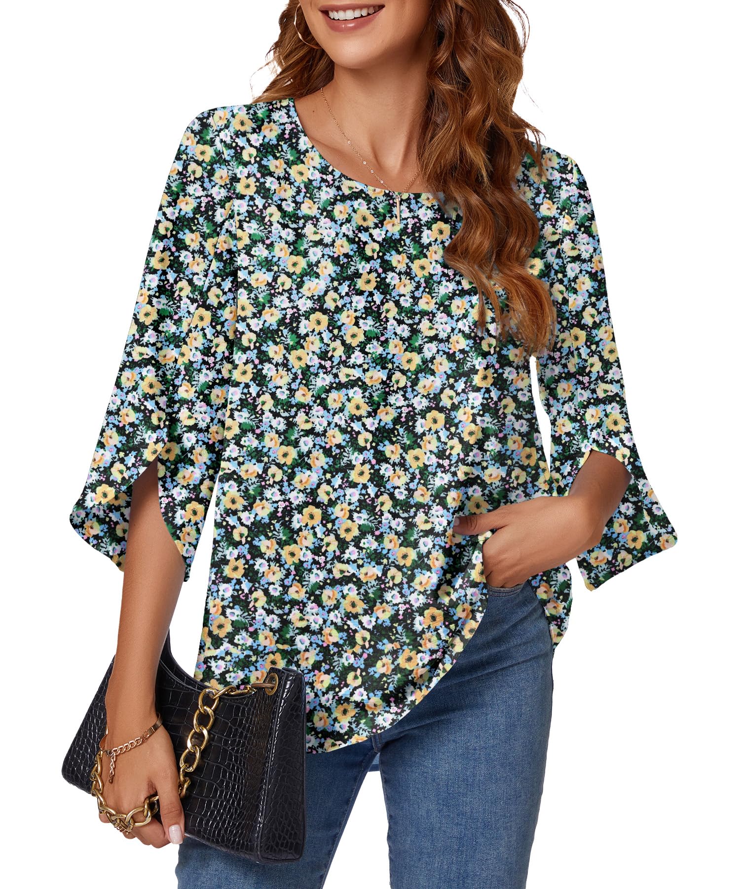 KUOTAI Womens Summer Tops Dressy Casual Shirts 3/4 Sleeve Work Blouse Business Casual Shirts|Clothing