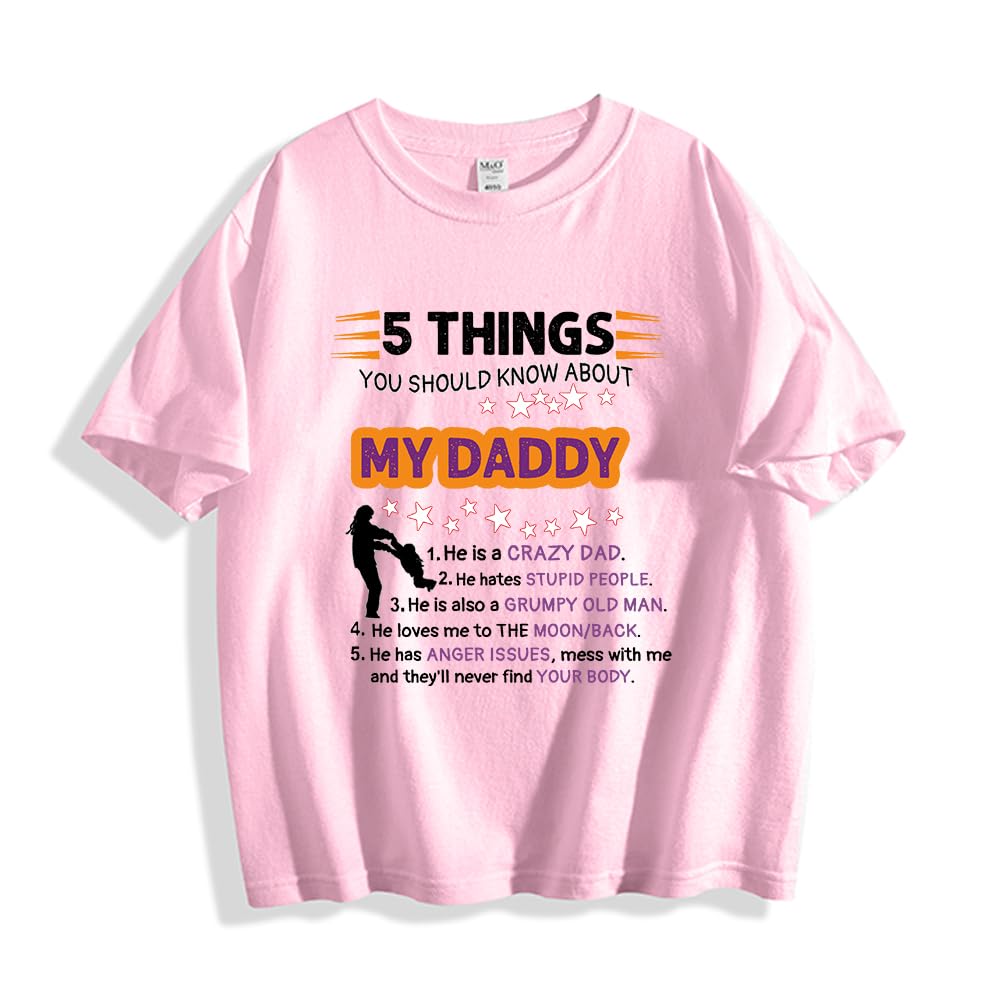 5 Things You Should Know About My Daddy Funny Son Daughter T-Shirt Boys & Girls Short Sleeve Tee(10T-12T) Pink|Clothing
